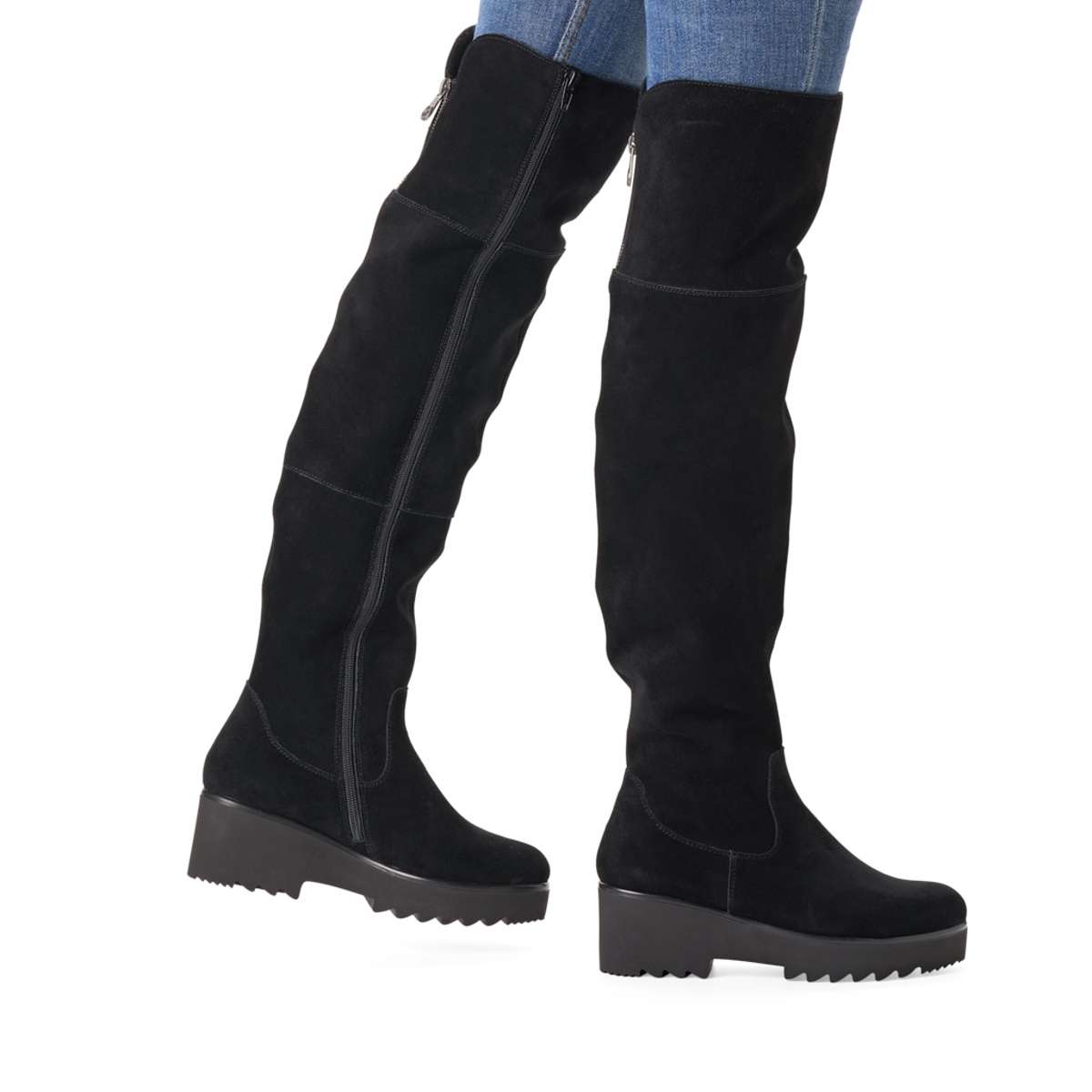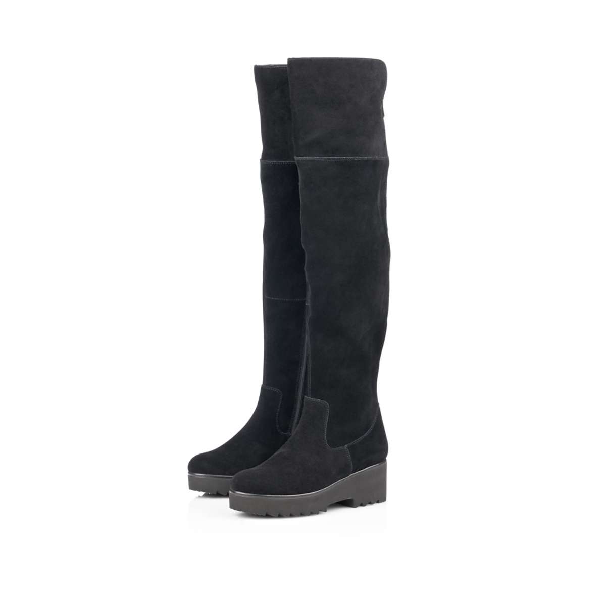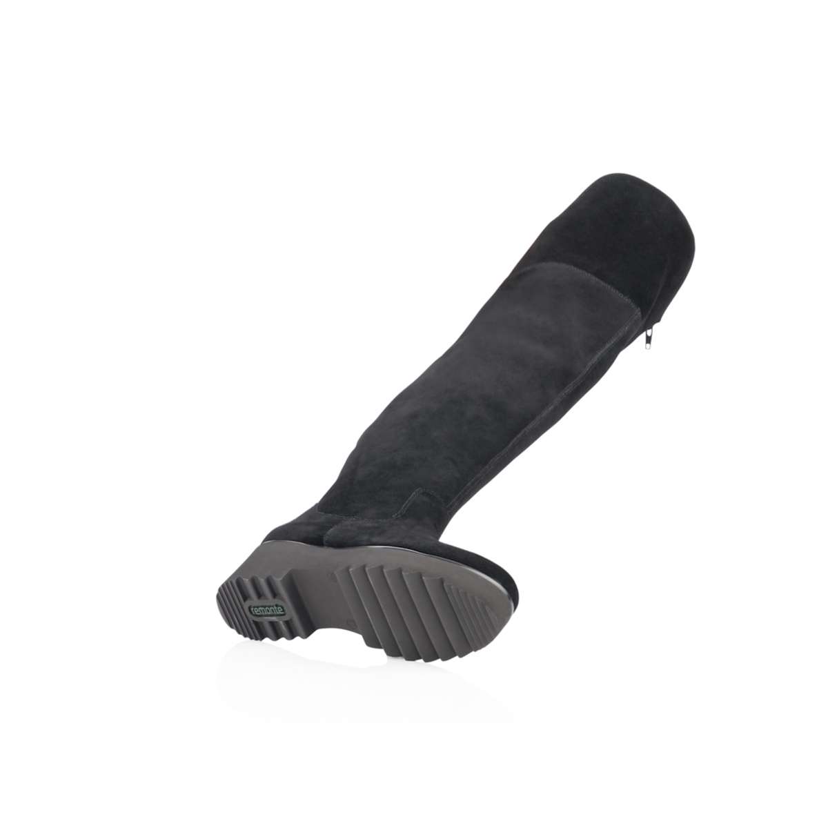 Dámské vysoké kozačky nad kolena z černé broušené kůže, značky REMONTE (jedná se o vyšší řadu značky RIEKER).