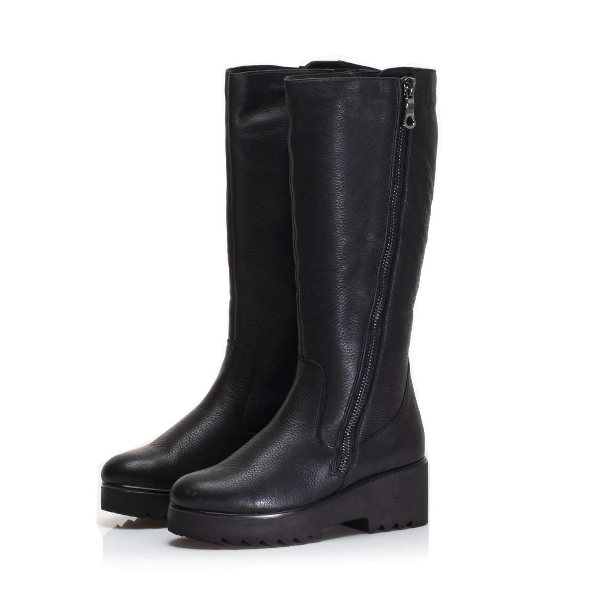 Dámské stylové kozačky vyrobeny z pravé kůže v černé barvě, Vás zaujmou prošitím v oblasti nártu a kotníku. Pro snadné obutí je zapracován funkční zip z vnější strany. Tento model je jedinečný, díky svému jednoduchému vzhledu.