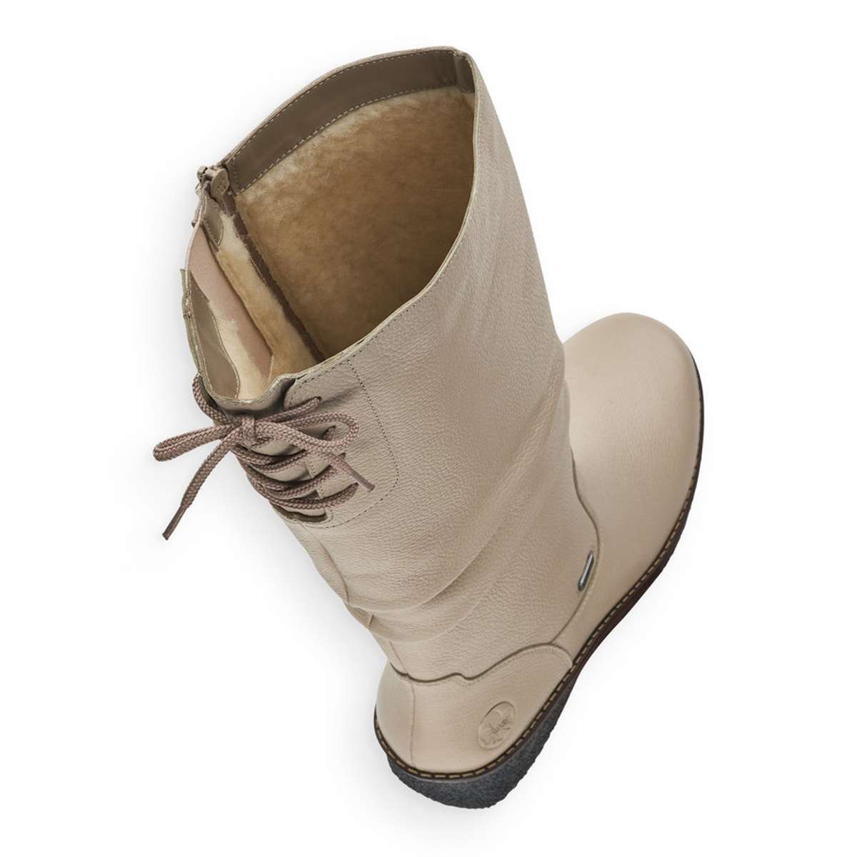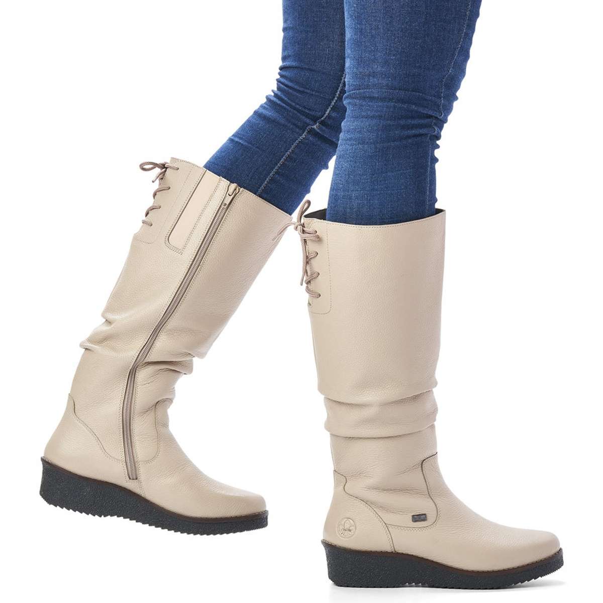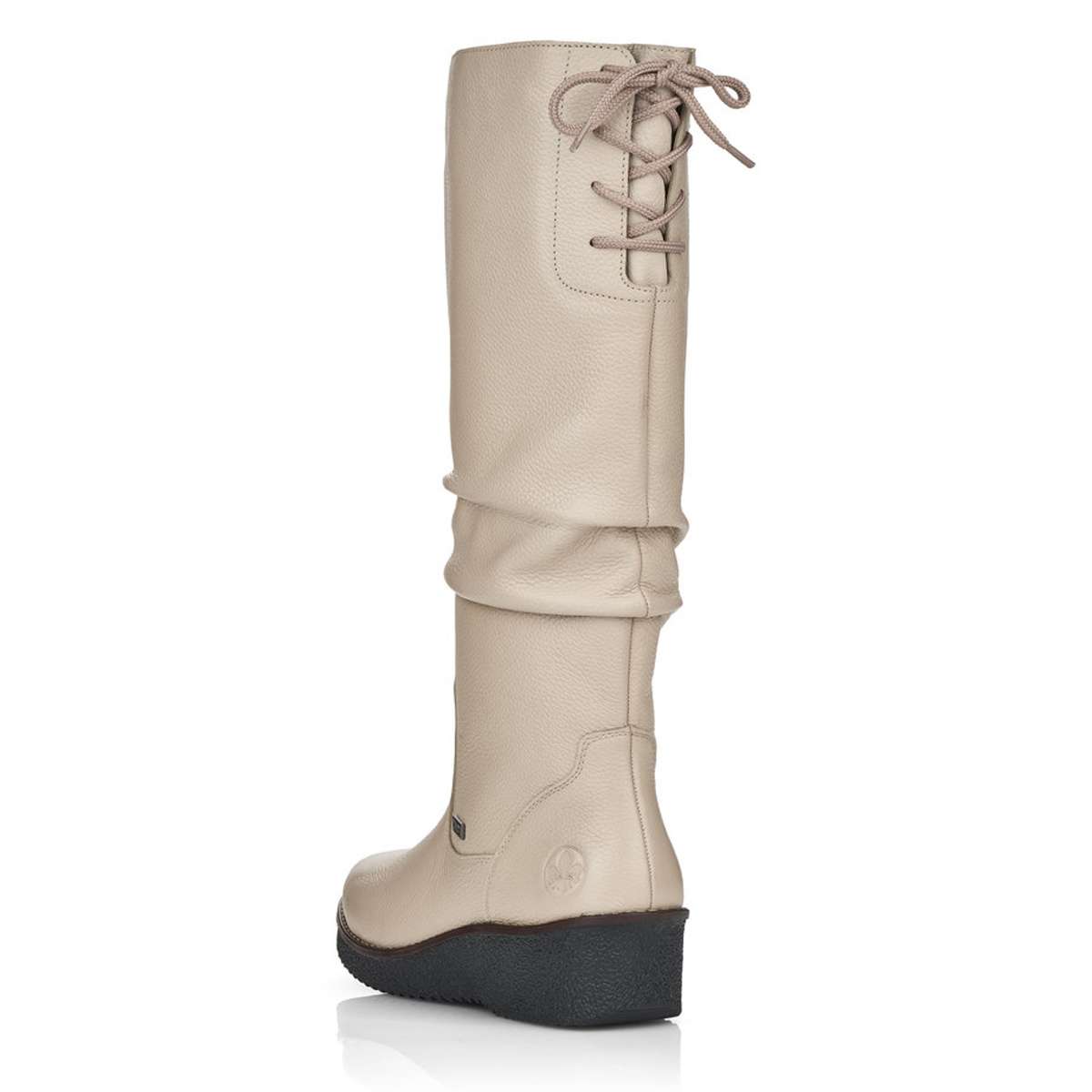 Dámské zimní kozačky od značky RIEKER se svrchním materiálem vyrobeným z pravé přírodní usně zaujmou především krčením v prostřední části. Zapínají se pomocí funkčního zipu na vnitřní straně a díky pružné gumičce se obuv přizpůsobí přímo k Vaší noze. Rieker TEX – funkční vrstva, díky které je bota nepromokavá a přesto prodyšná.