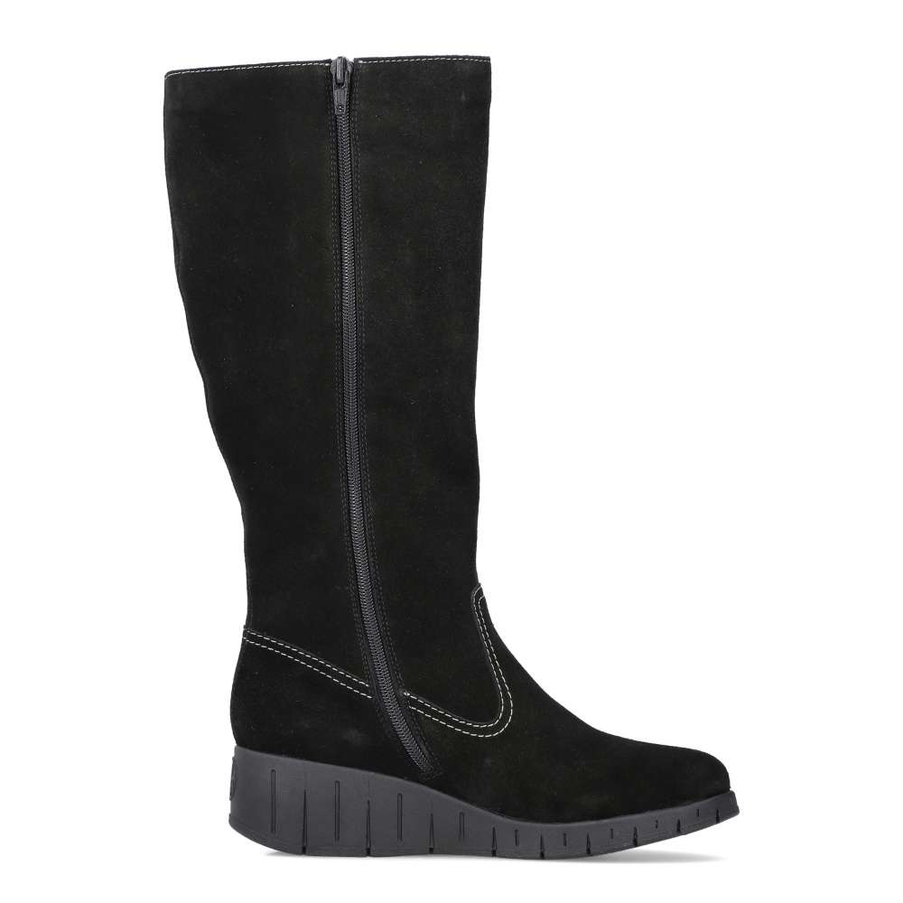 Tyto dámské kozačky od značky Rieker mají svršek z přírodní broušené usně v černé barvě s membránou zabraňující promoknutí. Jsou lehce prošity pro dokonalý vzhled. Nazouvání Vám usnadní funkční zip na vnitřní straně a díky gumovému rozparku hezky obepnou Vaši nohu. Pohodlí na každém kroku zajistí měkká stélka a podšívka z pravé ovčí vlny Vás zahřeje při chladnějším počasí. Podešev na klínku má technologii Antistress, která je lehká, flexibilní a absorbuje nárazy při došlapu. Dopřejte si tento lehce kombinovatelný kousek, který opravdu podtrhne Vaši jedinečnost. Technologie: Antistress – podešev je díky této technologii lehká, flexibilní, absorbuje nárazy při došlapu a snadno se přizpůsobí každé noze. Rieker TEX – funkční vrstva, díky které je bota nepromokavá a přesto prodyšná. Podšívka je vyrobena z pravé ovčí vlny. ORIENTAČNÍ OBVOD KOZAČEK V HORNÍ ČÁSTI BOTY Velikost 37: cca 37 cm + cca 1,5 cm díky pružné gumičce Velikost 38: cca 38 cm + cca 1,5 cm díky pružné gumičce Velikost 39: cca 39 cm + cca 1,5 cm díky pružné gumičce Velikost 40: cca 40 cm + cca 1,5 cm díky pružné gumičce Velikost 41: cca 41 cm + cca 1,5 cm díky pružné gumičce Velikost 42: cca 42 cm + cca 1,5 cm díky pružné gumičce
