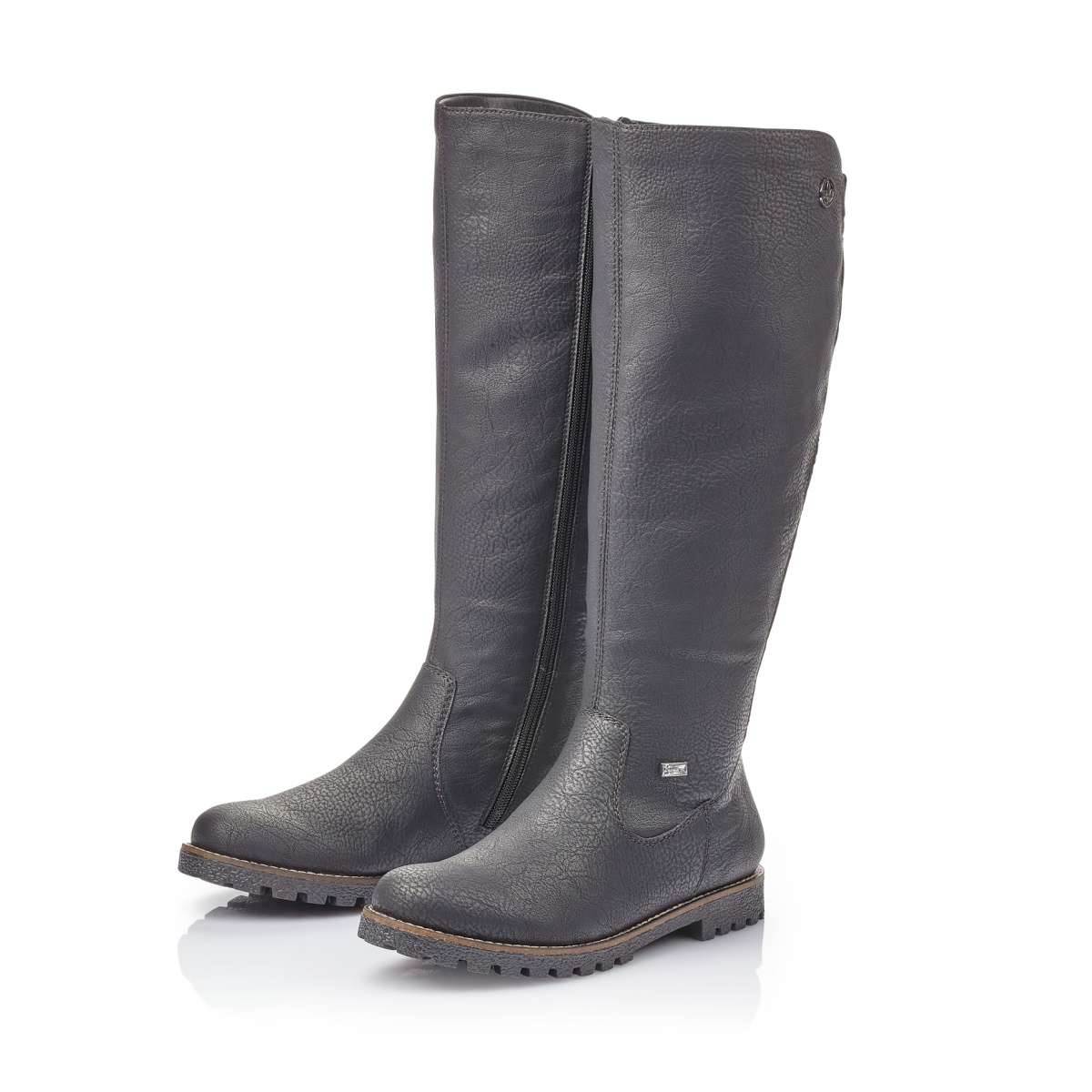 Pěkné dámské kozačky v černé barvě mají kulatou špičku, RiekerTex což je funkční vrstva, teplou podšívku, funkční zip na vnitřní straně pro snadné obutí a v zadní části boty sytém Vario což je strečový materiál, který umožňuje zvětšení objemu kolem lýtka. Tento model je vhodný jak na cestu do práce, tak na procházky s pejskem.