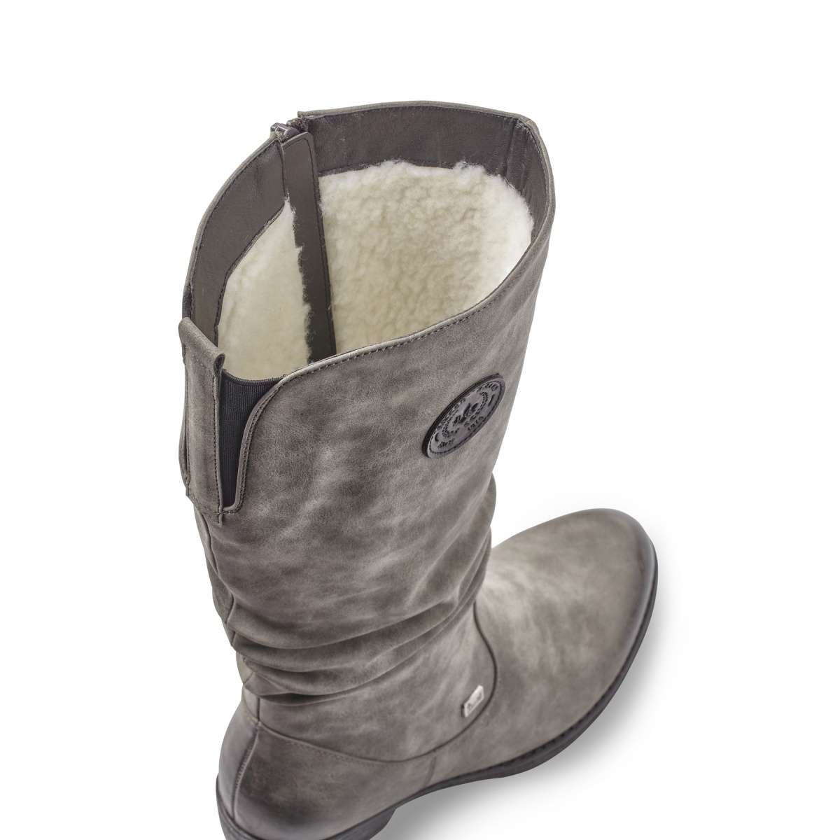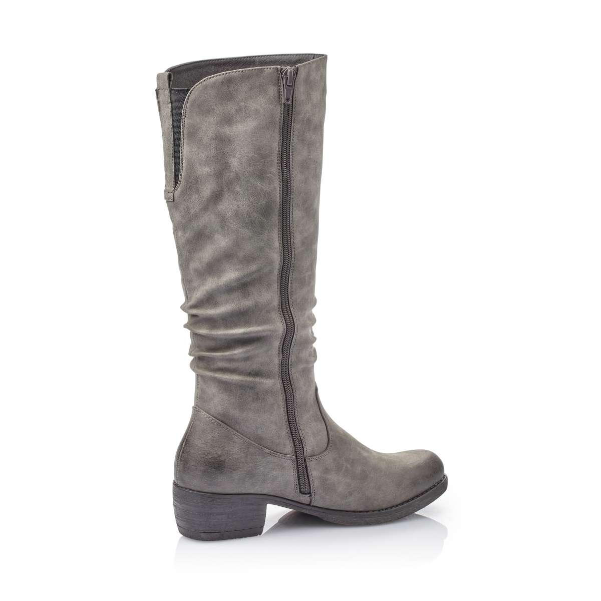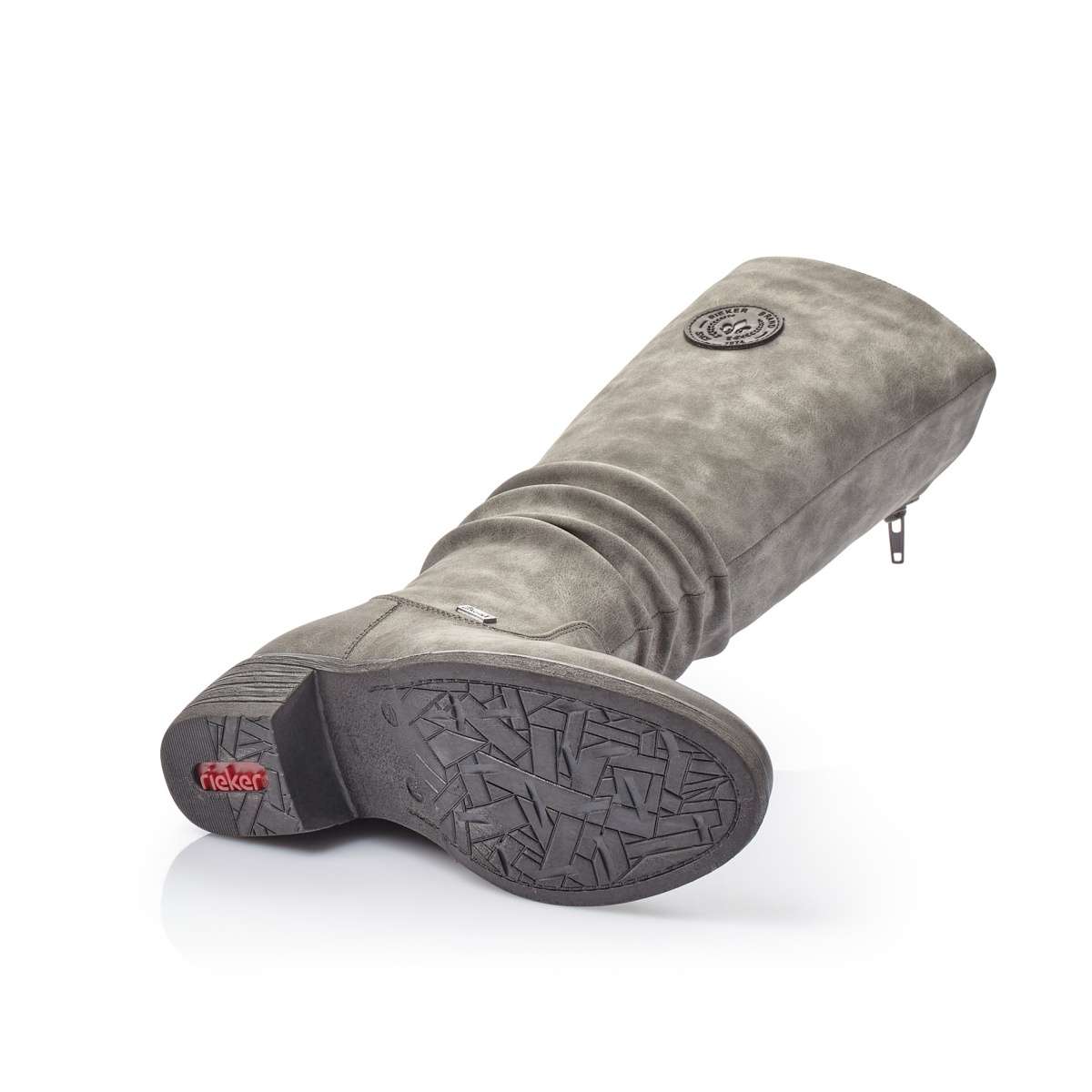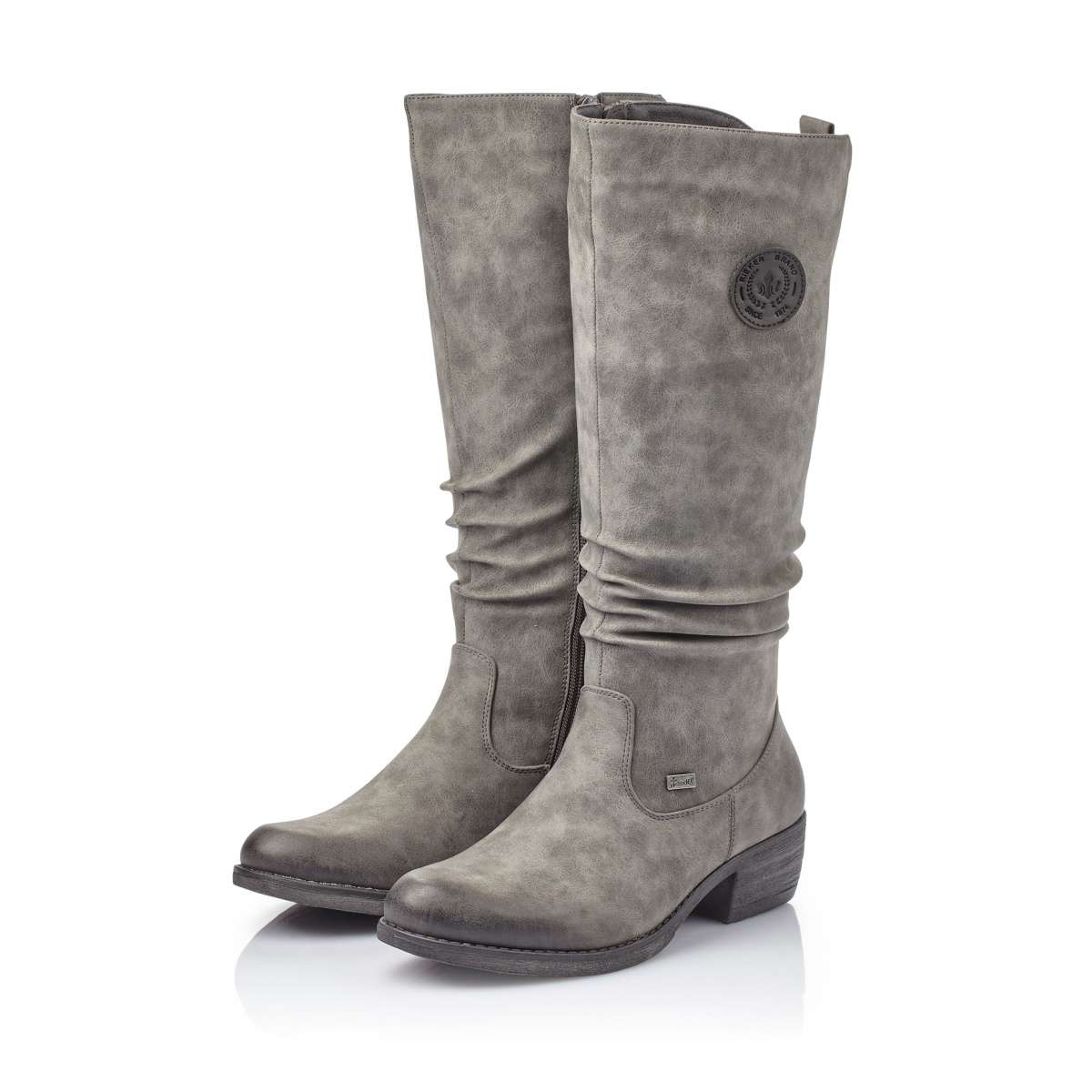 Volnočasové dámské kozačky se zipem z vnitřní strany na zapínání, zdobené jsou řasením a hnědým logem Rieker. Díky pružné gumičce v horní části se kozačky dokonale přizpůsobí Vaší noze. Vrchní materiál obuvi je syntetický a je zde využita Technologie RiekerTex, která činí botu prodyšnou a zároveň nepromokavou. Obuv je vhodná do mrazivého počasí a můžete je nosit jak ke kabátu tak sportovní bundě.