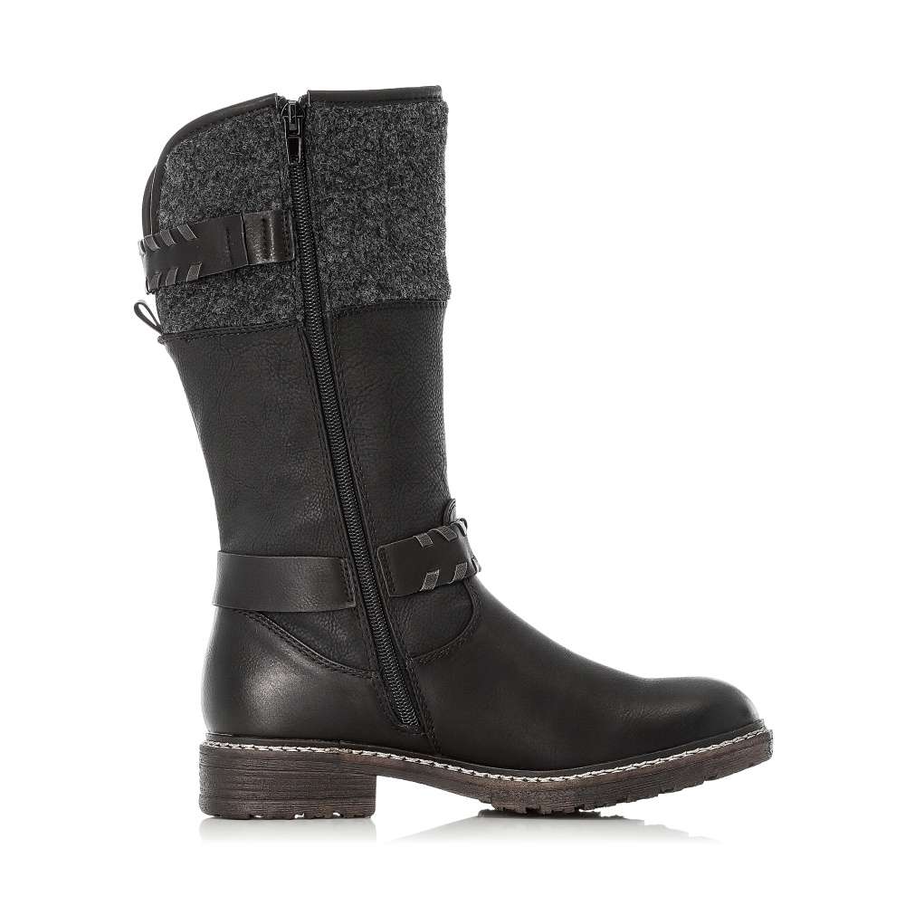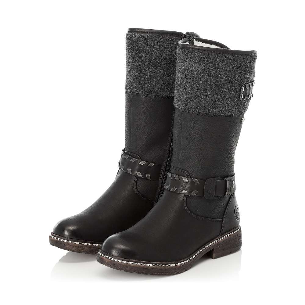 Tato nízká dámská kozačka od značky Rieker upoutá pohled každé ženy, díky vrchní části, která je vyrobena z fleecu a zezadu je doplněna rozparkem. Zdobné pásky se cvočky dělají obuv velmi stylovou. Zateplená podšívka, hřejivá stélka a zapínání na zip, to vše zajistí potřebný komfort v chladných zimních dnech. Tyto boty jsou skvělou volbou na pochůzky městem.