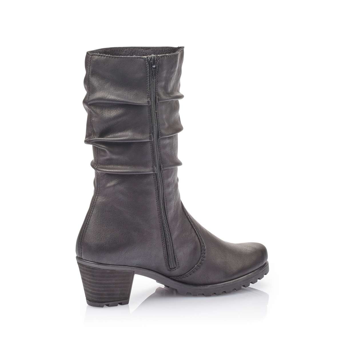Elegantní polokozačka v černém provedení s jemným pokrčením v horní části, značky RIEKER.