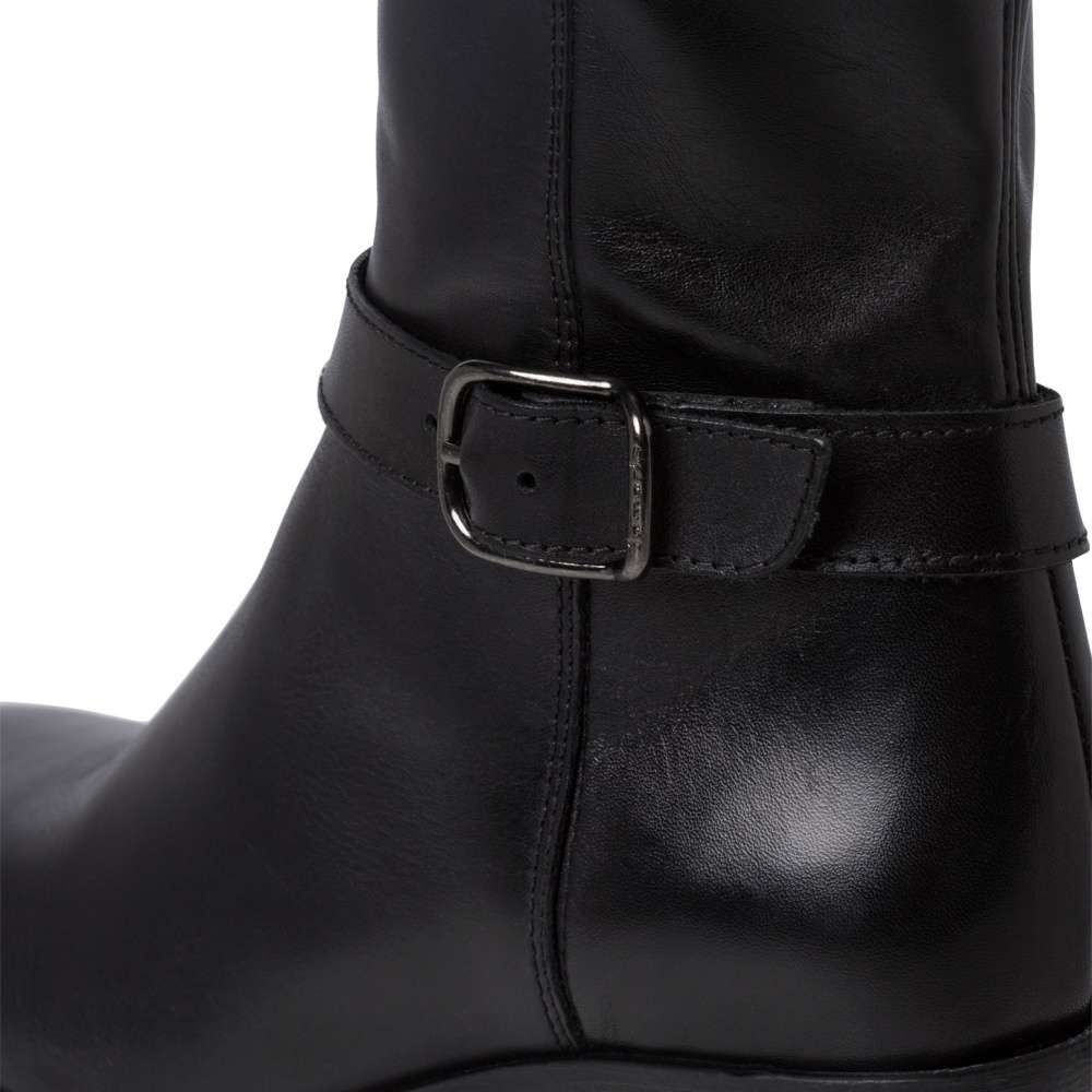 Hladký svršek je zdobný v oblasti kotníku páskem s kovovou přezkou, prošíváním a u horního okraje decentně vytlačeným názvem značky. Snadně nazouvání zajistí funkční zip na vnitřní straně obuvi.
