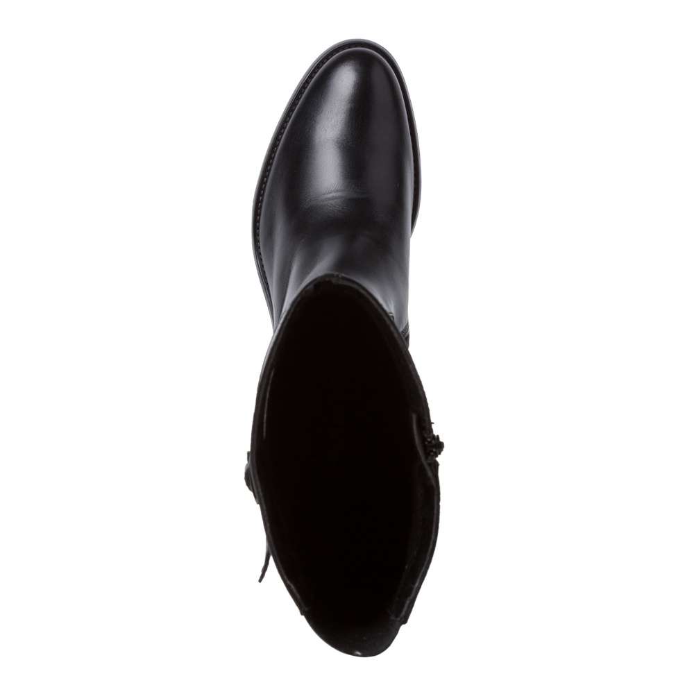 Hladký svršek je zdobný v horní části páskem s kovovou přezkou, prošíváním a u horního okraje decentně vytlačeným logem značky. Snadně nazouvání zajistí funkční zip na vnitřní straně obuvi a o přizpůsobení obuvi se postará všitá pružná gumička na zadní straně.