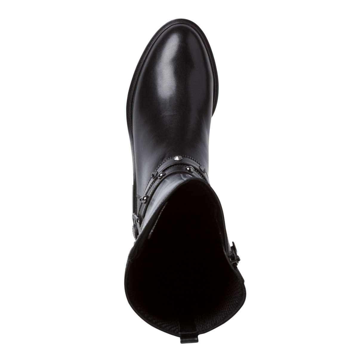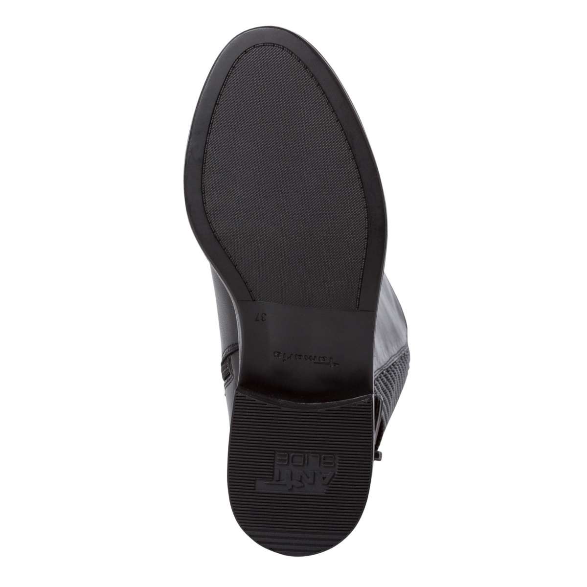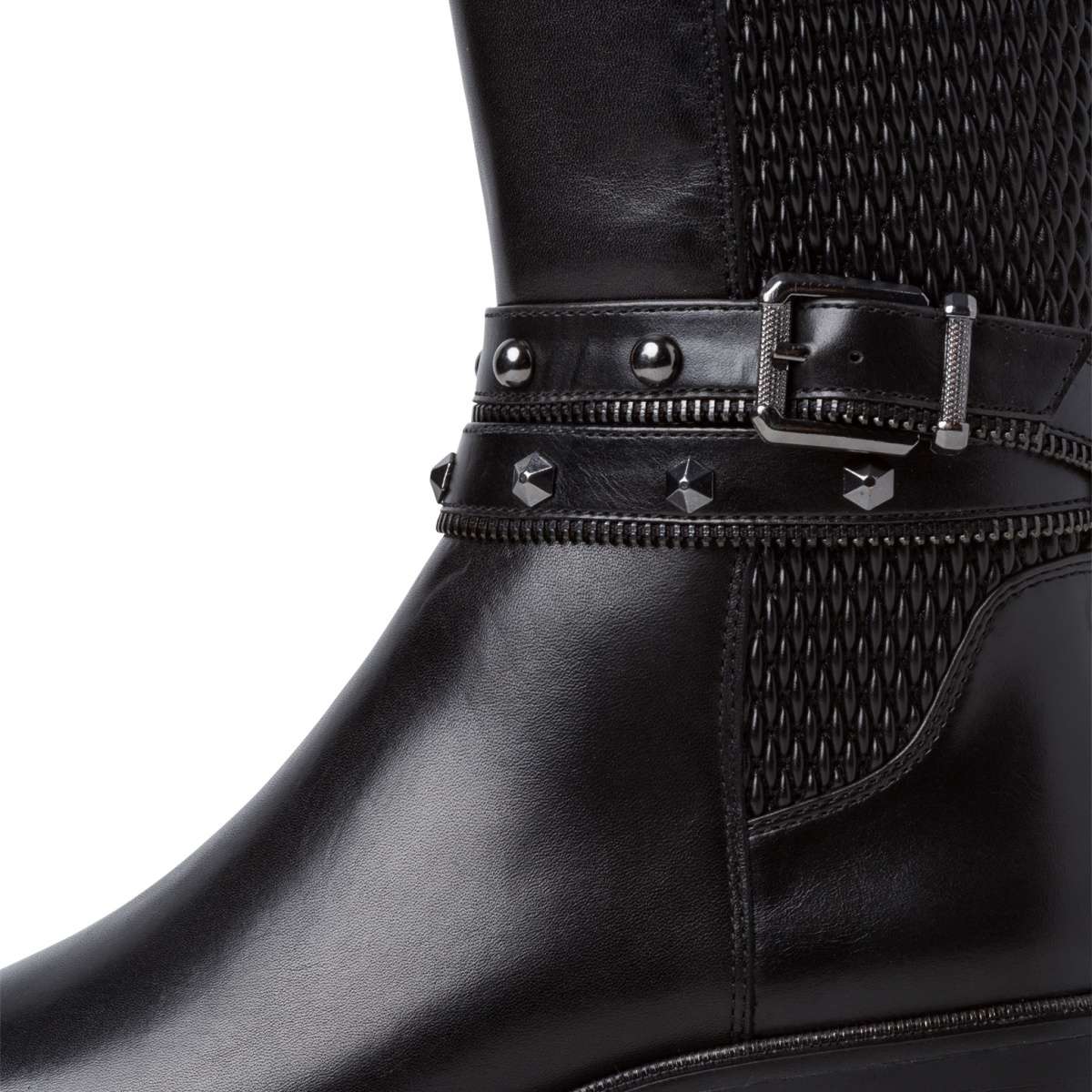Svršek je v oblasti kotníku zdoben dvěma pásky zdobnými kovovými prvky a sponou. Aby se Vám dobře obouvaly, je z vnitřní strany všitý zip a v oblasti lýtka je řasení, které usnadní přizpůsobení obuvi.