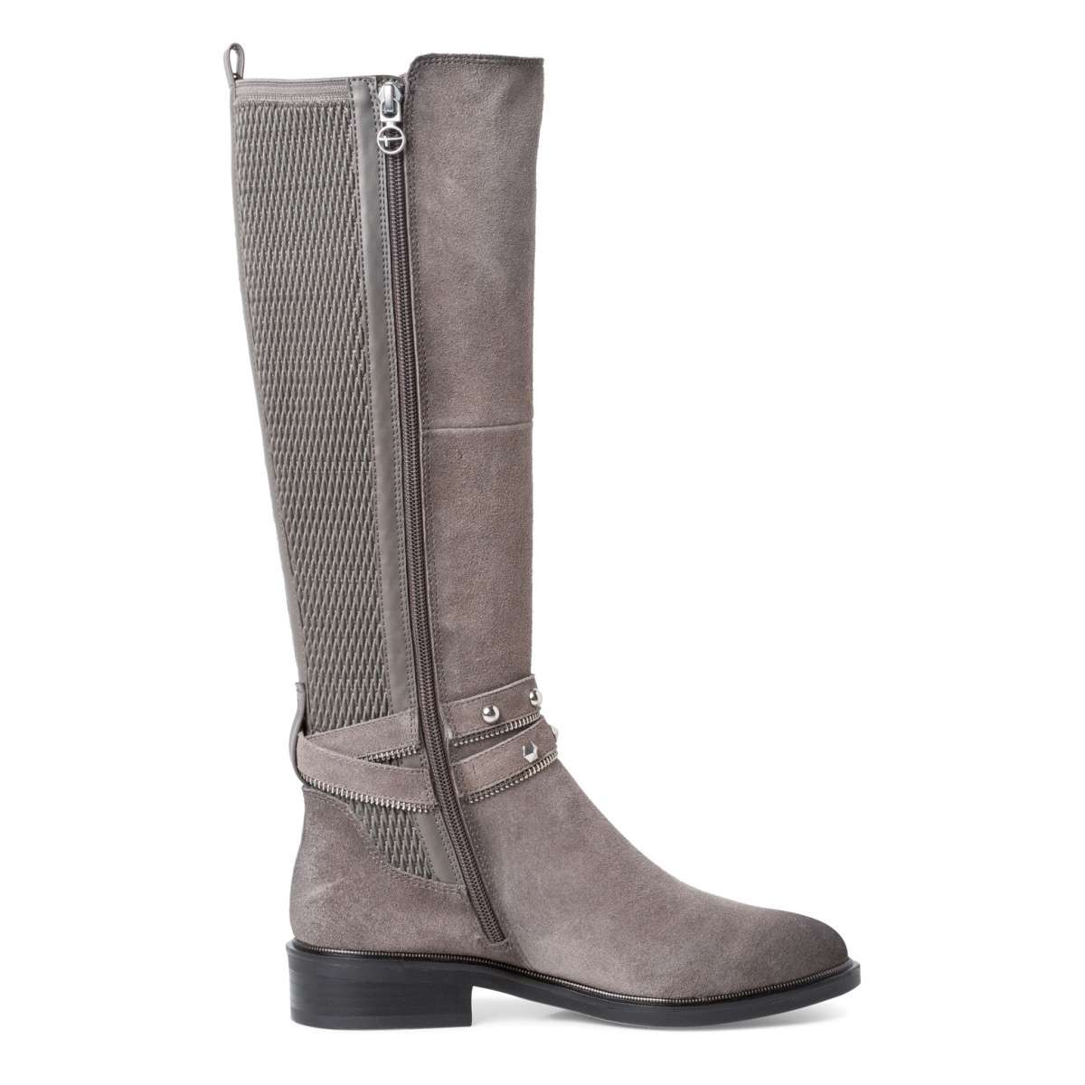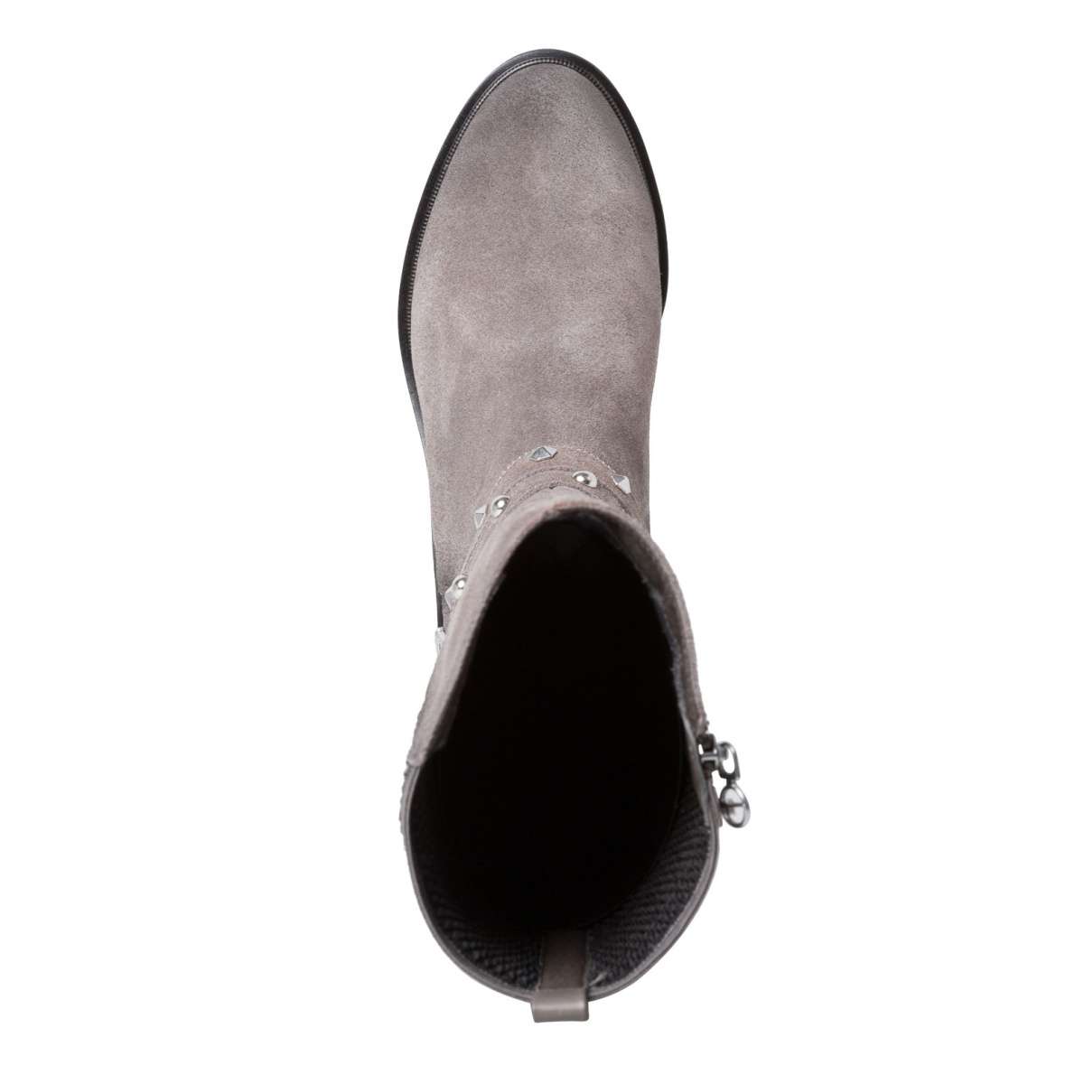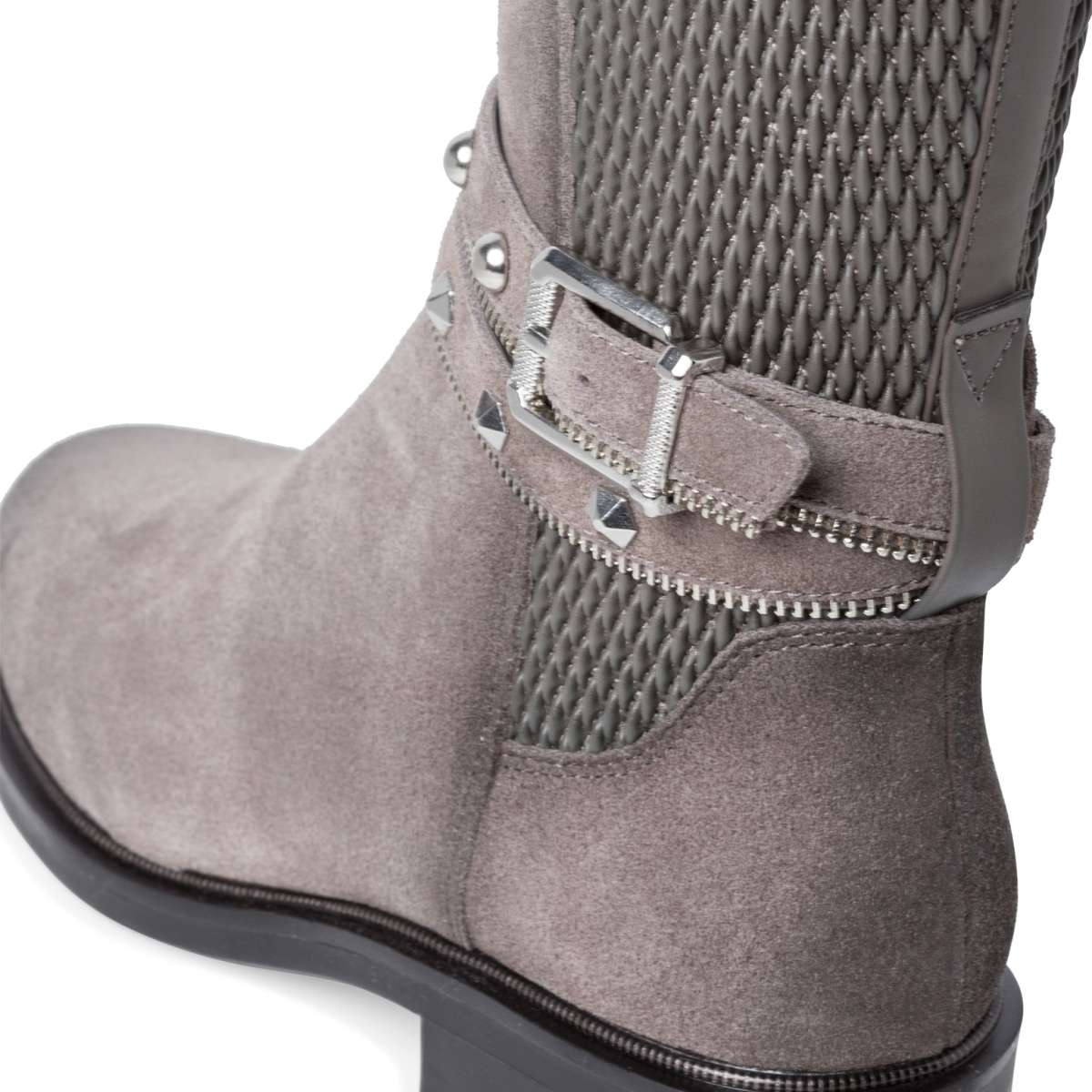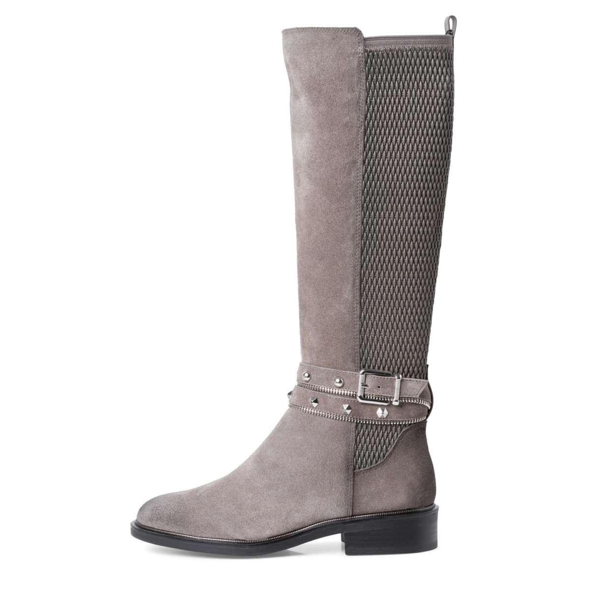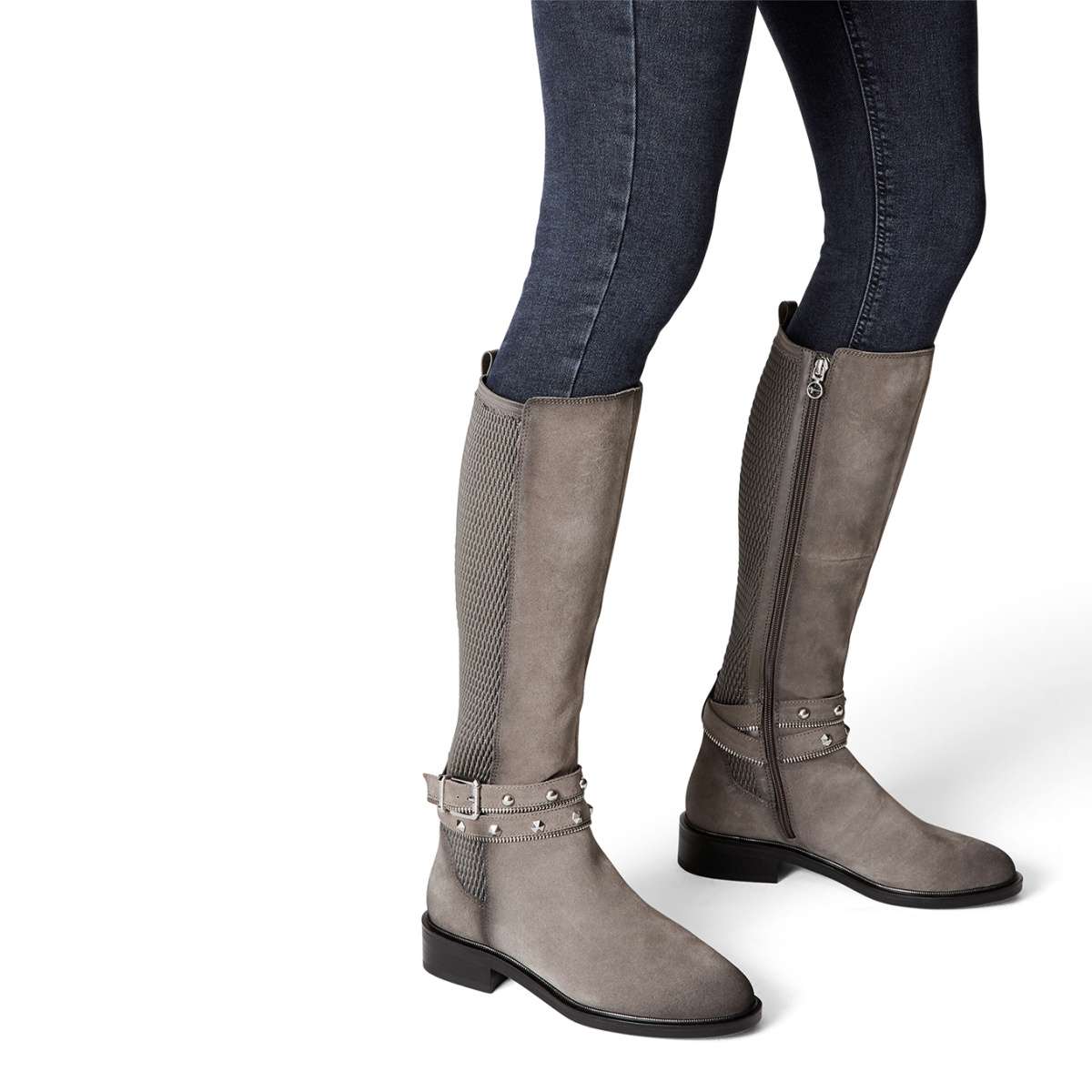 Svršek je v oblasti kotníku zdoben dvěma pásky zdobnými kovovými prvky a sponou. Aby se Vám dobře obouvaly, je z vnitřní strany všitý zip a v oblasti lýtka je řasení, které usnadní přizpůsobení obuvi.