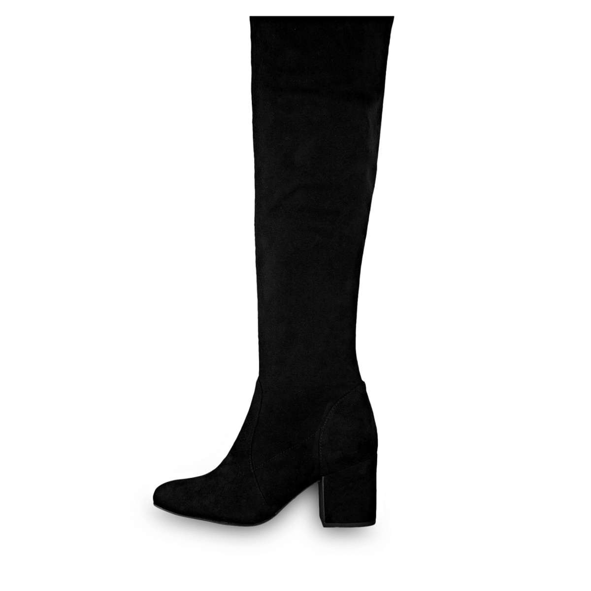 Úžasné textilní kozačky v černé barvě na středním podpatku jsou ideálním doplňkem Vašeho botníku. Mají kulatou špičku, na vnitřní straně zip pro snadné obutí a tkaničku pro úpravu boty kolem lýtka. Tento model velmi užijete ať už k cestě do práce nebo na nákupech.