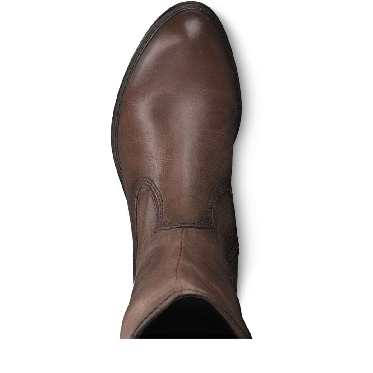 Dámská kozačka z pravé kůže v hnědé barvě, značky TAMARIS.