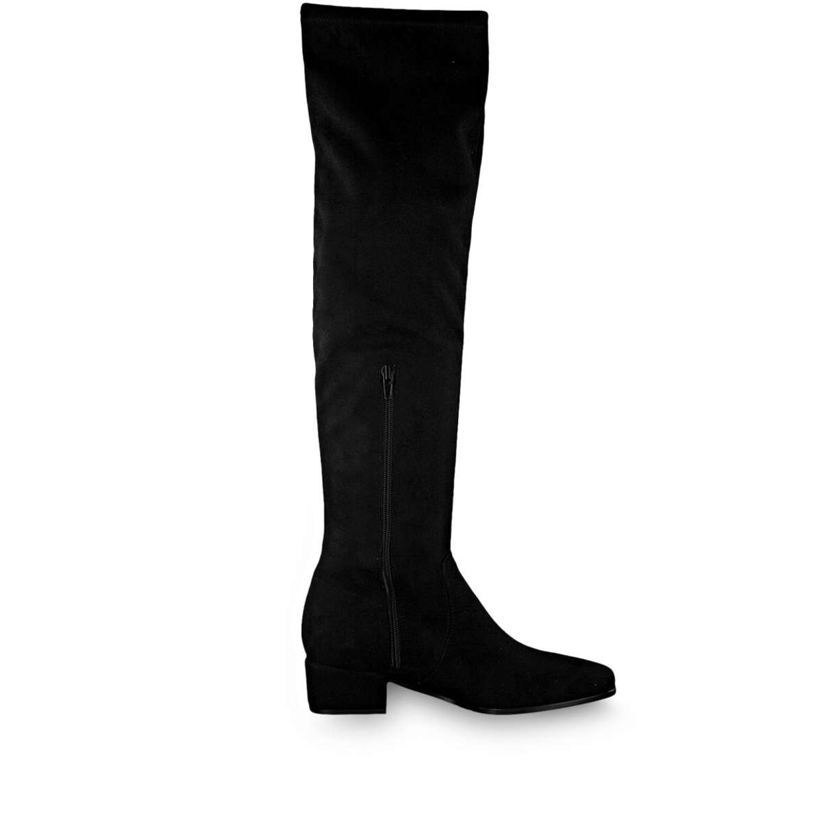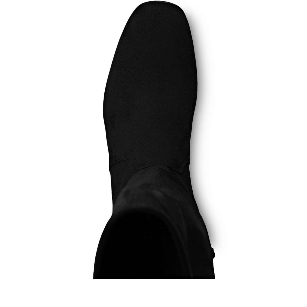 Tyto stylové vyšší kozačky jsou vyrobené z broušené textilie, imitace semiše. O snadné nazouvání se postará funkční zip na vnitřní straně a integrovaný Stretch zajistí, že se kozačka přizpůsobí každému lýtku. Díky jejich jednoduchému provedení si je můžete obout jak k šatům do divadla, tak k jeansům na procházku městem.