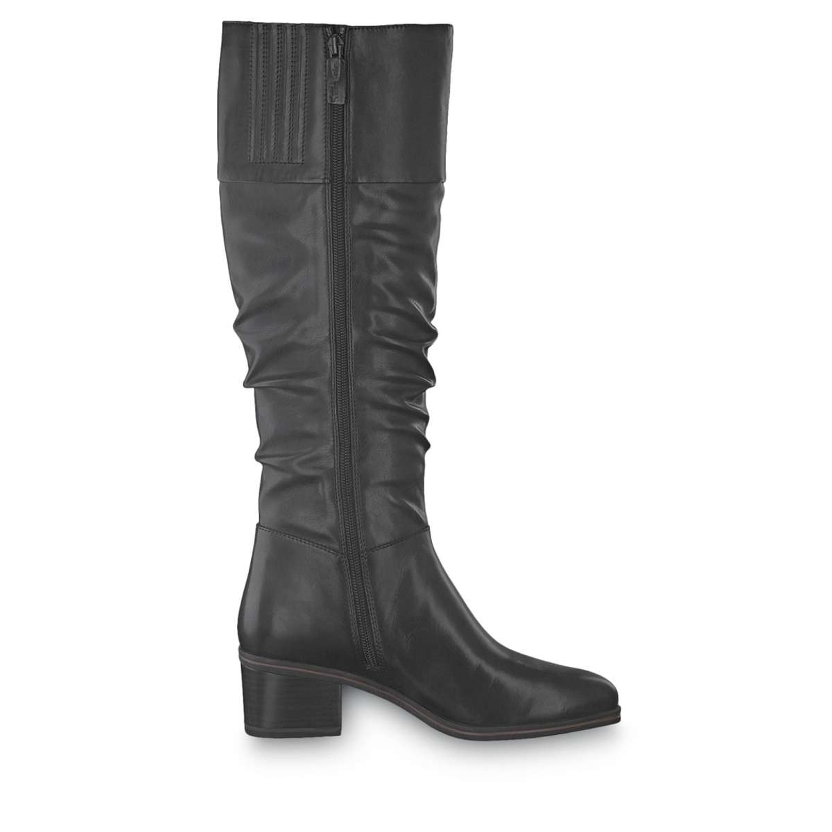 Dámská kožená kozačka černé barvy na nízkém podpatku, značky TAMARIS.