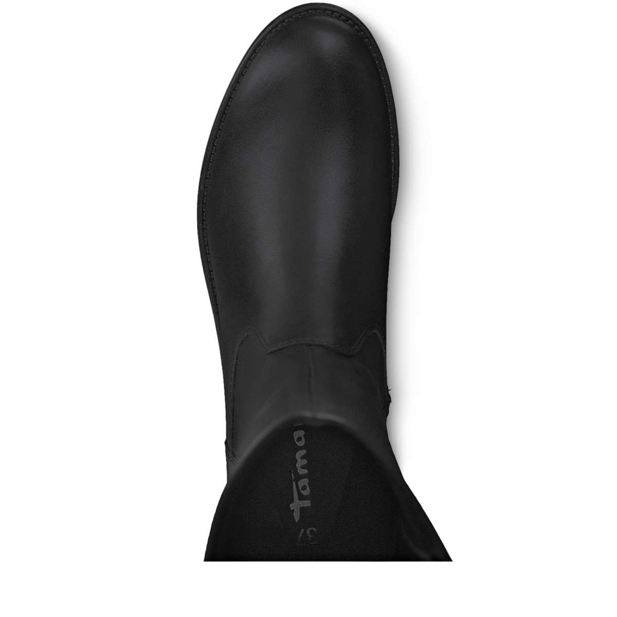 Dámská kožená kozačka v černé barvě na nízkém podpatku, značky TAMARIS.
