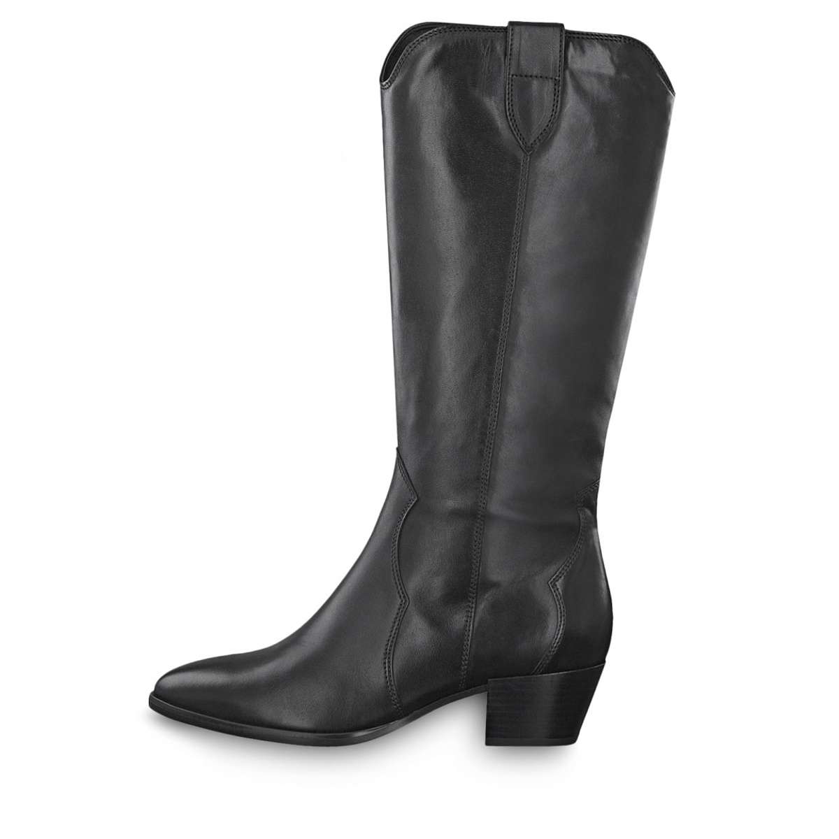 Dámská kožená kozačka černé barvy na nízkém podpatku, značky TAMARIS.