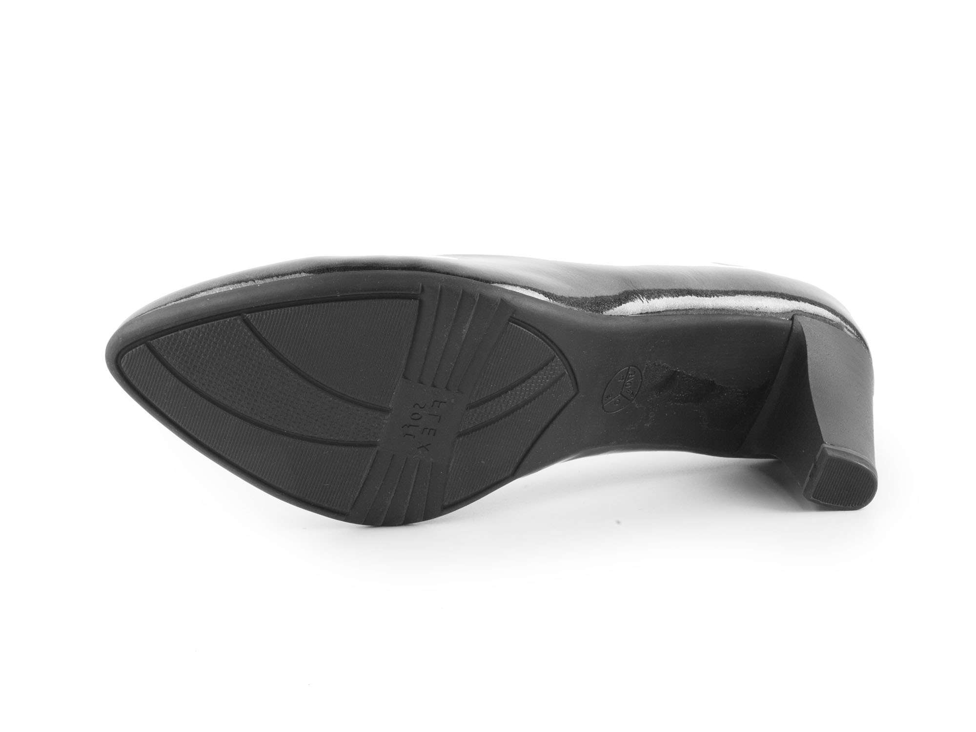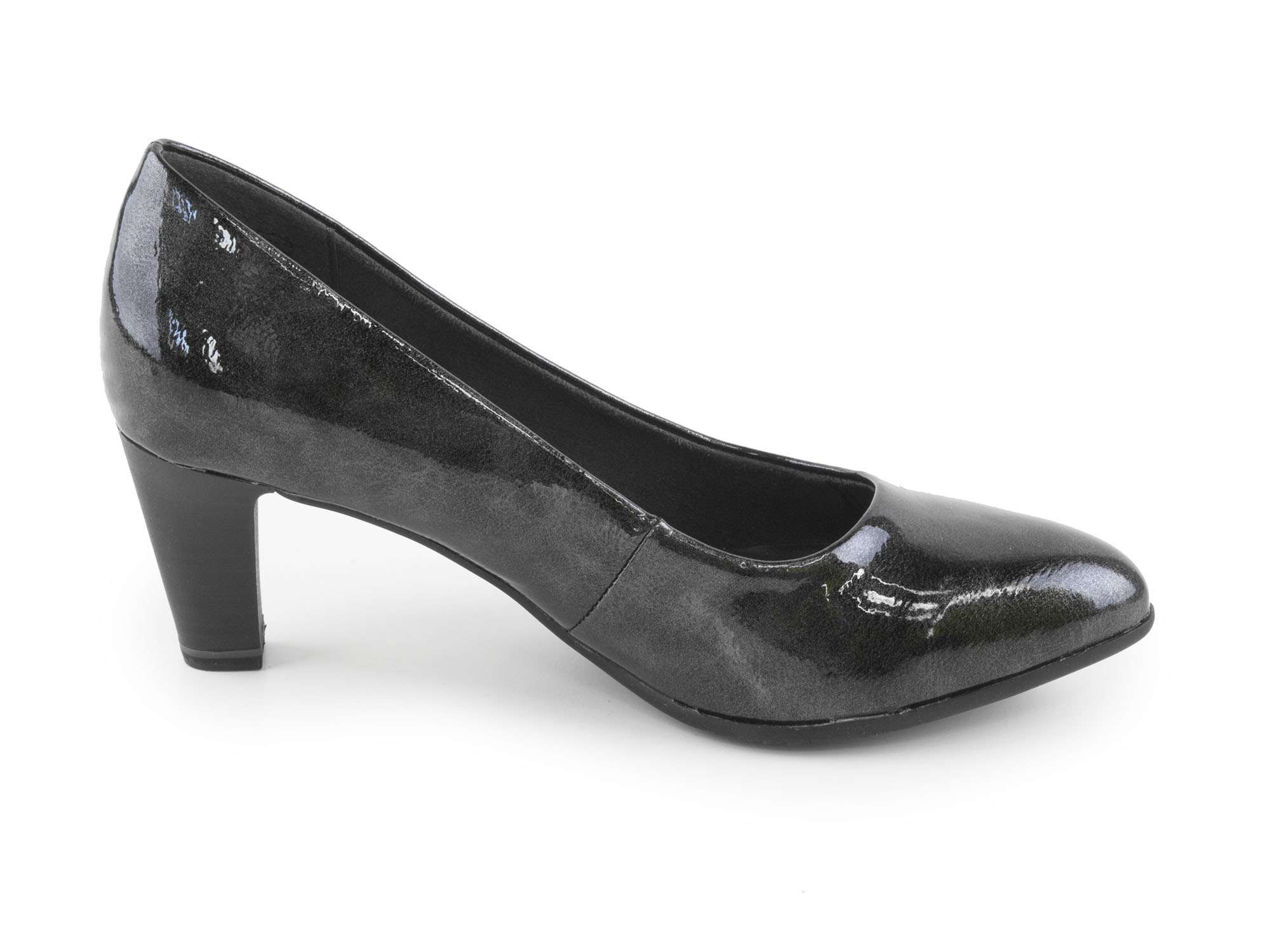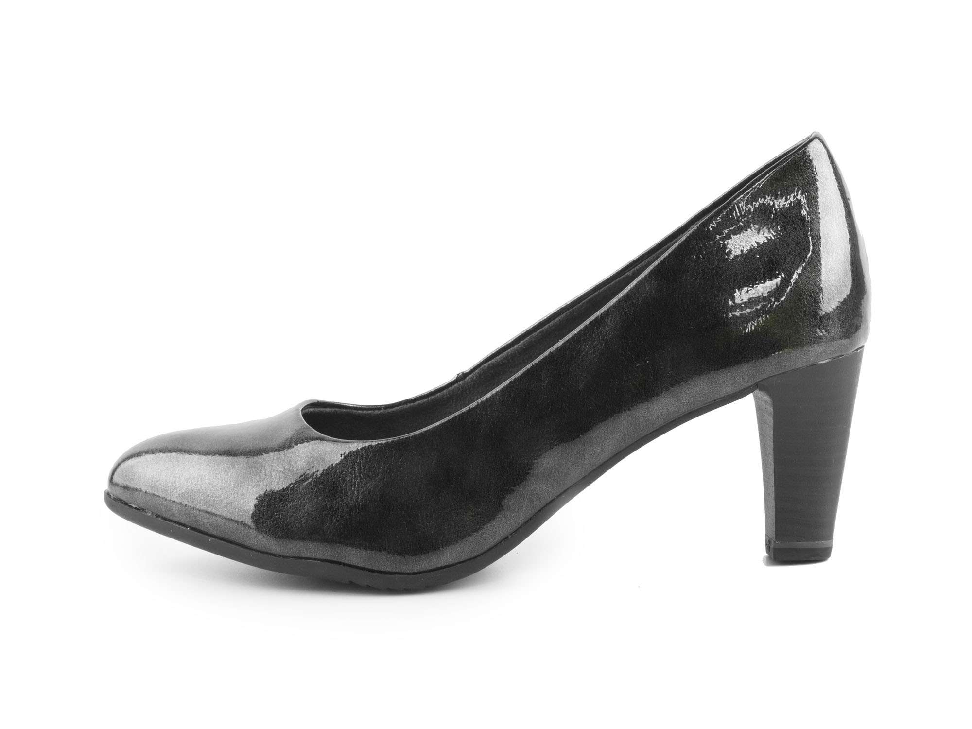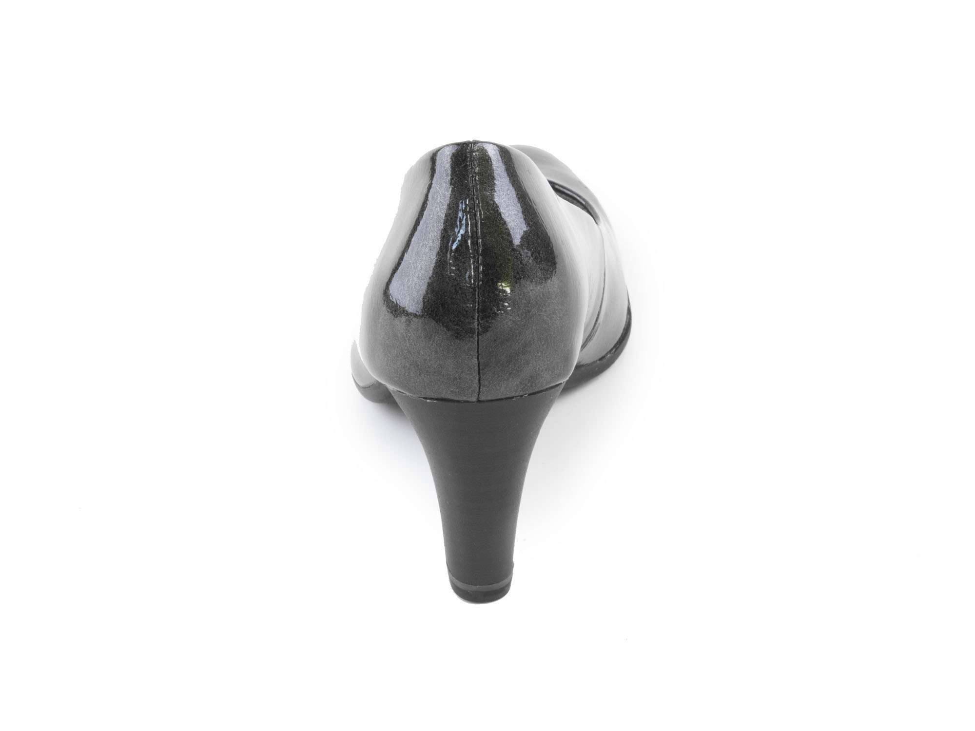 • detail Dámské lakované lodičky na středním podpatku šíře G 8-22400-27 / černo - šedá