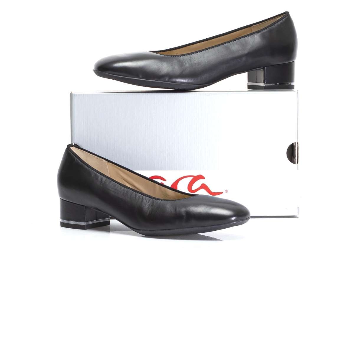 Tyto dámské široké boty značky ARA si vždy hravě poradí s jedinečným designem. Svrchní kožený materiál je hladký a zároveň velmi elegantní. Blokový podpatek zdobený lesklým páskem dokola je vysoký 4,5 cm a je ideální pro každodenní nošení poskytující držení těla. Kožené stélky jsou měkké na došlap. Boty Vám poslouží pro každodenní nošení a můžete je zkombinovat jak se sukní, tak s kalhoty.