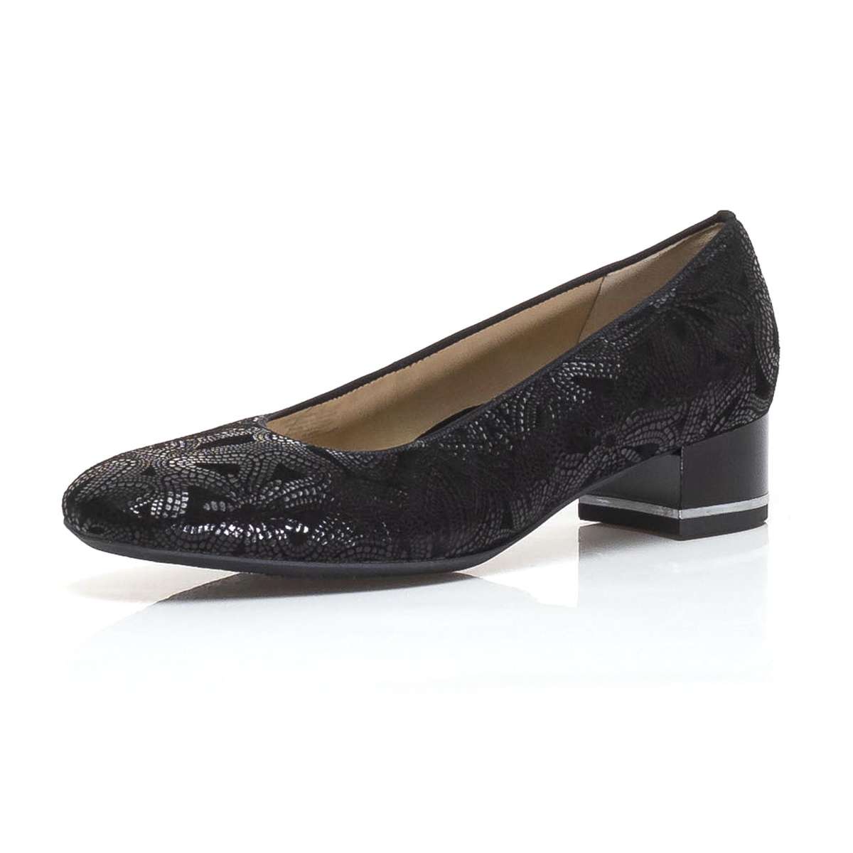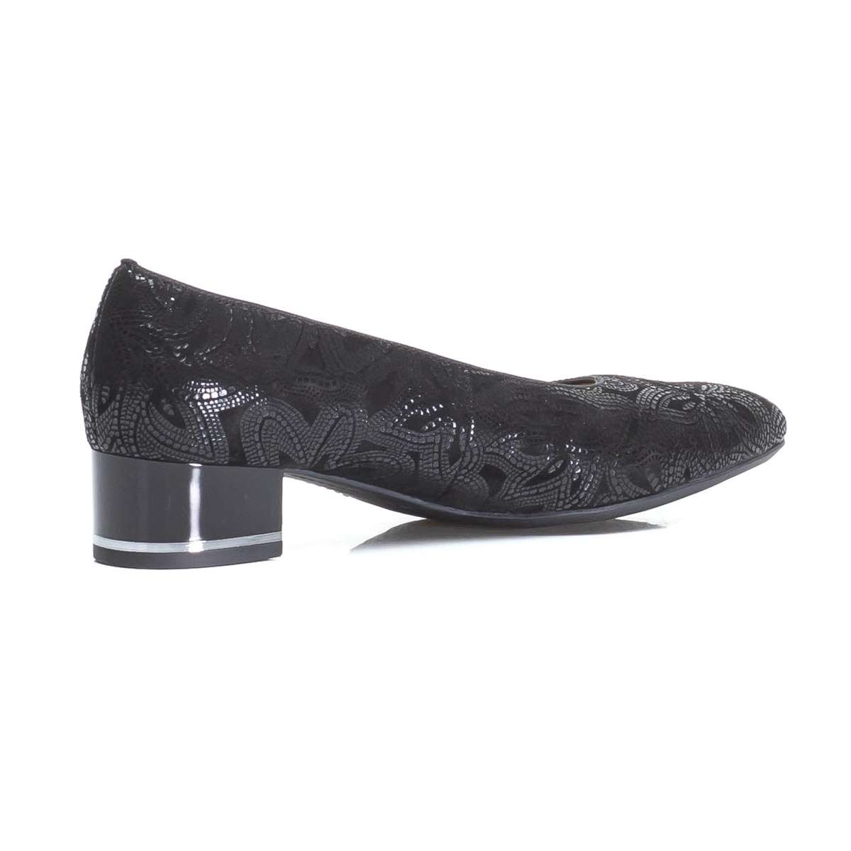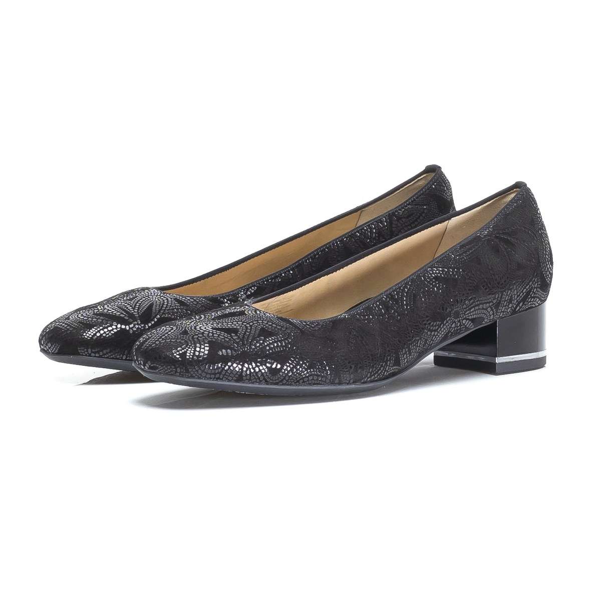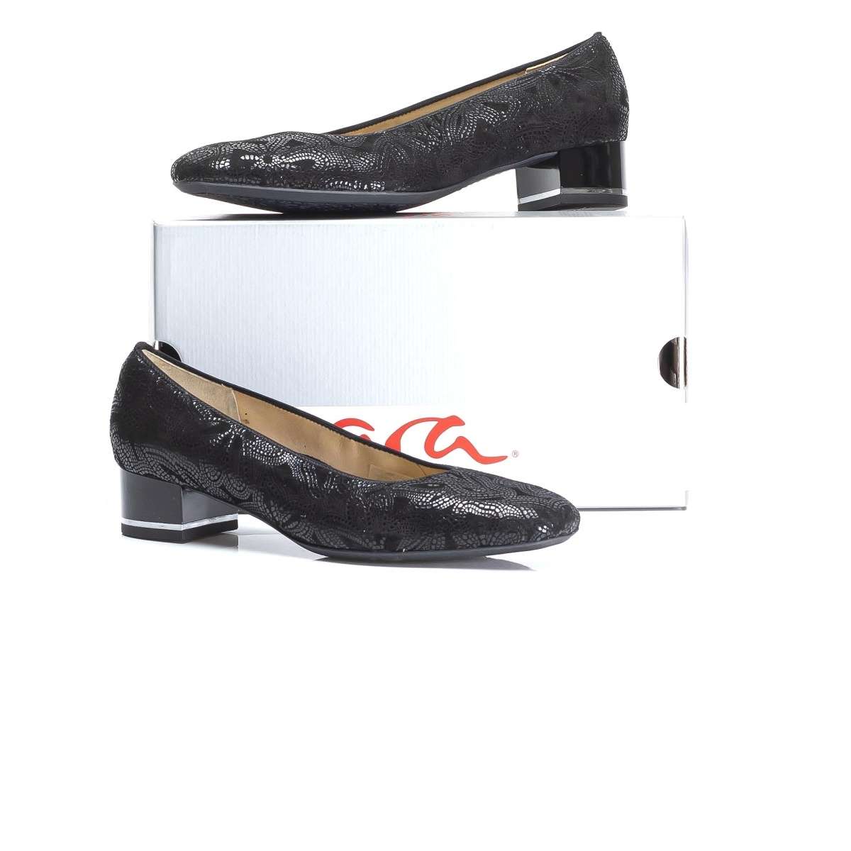 Tyto dámské široké boty značky ARA si vždy hravě poradí s jedinečným designem. Svrchní kožený materiál je zdobený jemným vzorem a zároveň velmi elegantní. Blokový podpatek zdobený lesklým páskem dokola je vysoký 4,5 cm a je ideální pro každodenní nošení poskytující držení těla. Kožené stélky jsou měkké na došlap. Boty Vám poslouží pro každodenní nošení a můžete je zkombinovat jak se sukní, tak s kalhoty.
