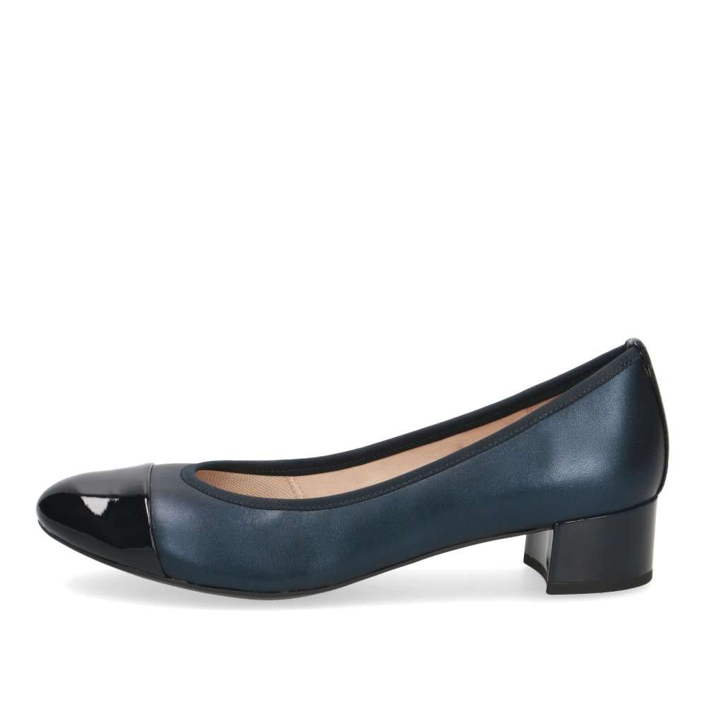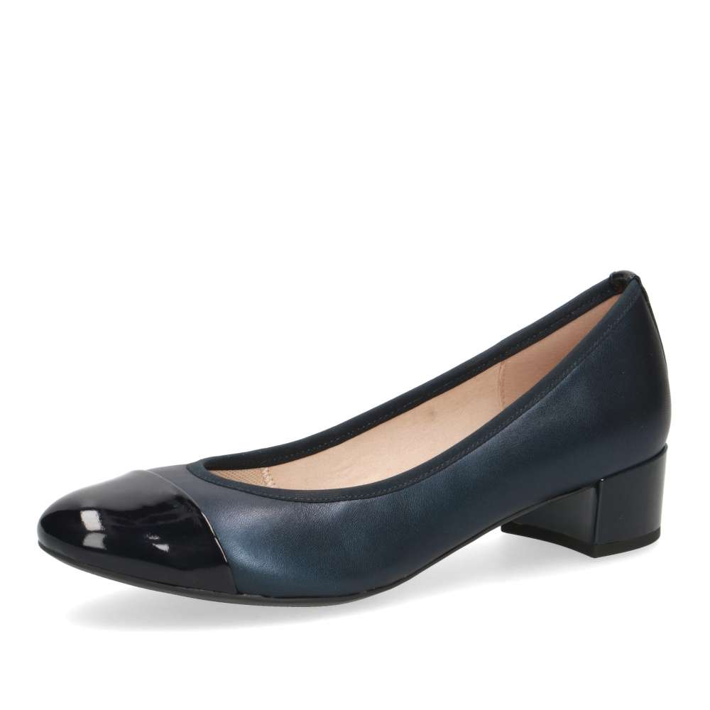 Jednoduché stylové lodičky vhodné na každou příležitost, značky CAPRICE. Svršek Svršek vyrobený z pravé kůže je ozdoben lesklou špičkou a obuv Vám bude skvěle sedět na noze díky pružnému lemu. Stélka Pohodlí na každém kroku Vám zajistí měkká kožená stélka. Podešev Nízká podešev je vyrobena z kvalitního syntetického materiálu a zajistí Vám pohodlí na každém kroku, díky nízkému stabilnímu podpatku. Lodičky nabízíme ve dvou barevných kombinacích, které budou skvěle vypadat jak se sukní, šaty, nebo třeba i s kalhotami.