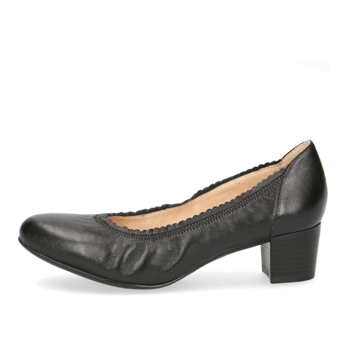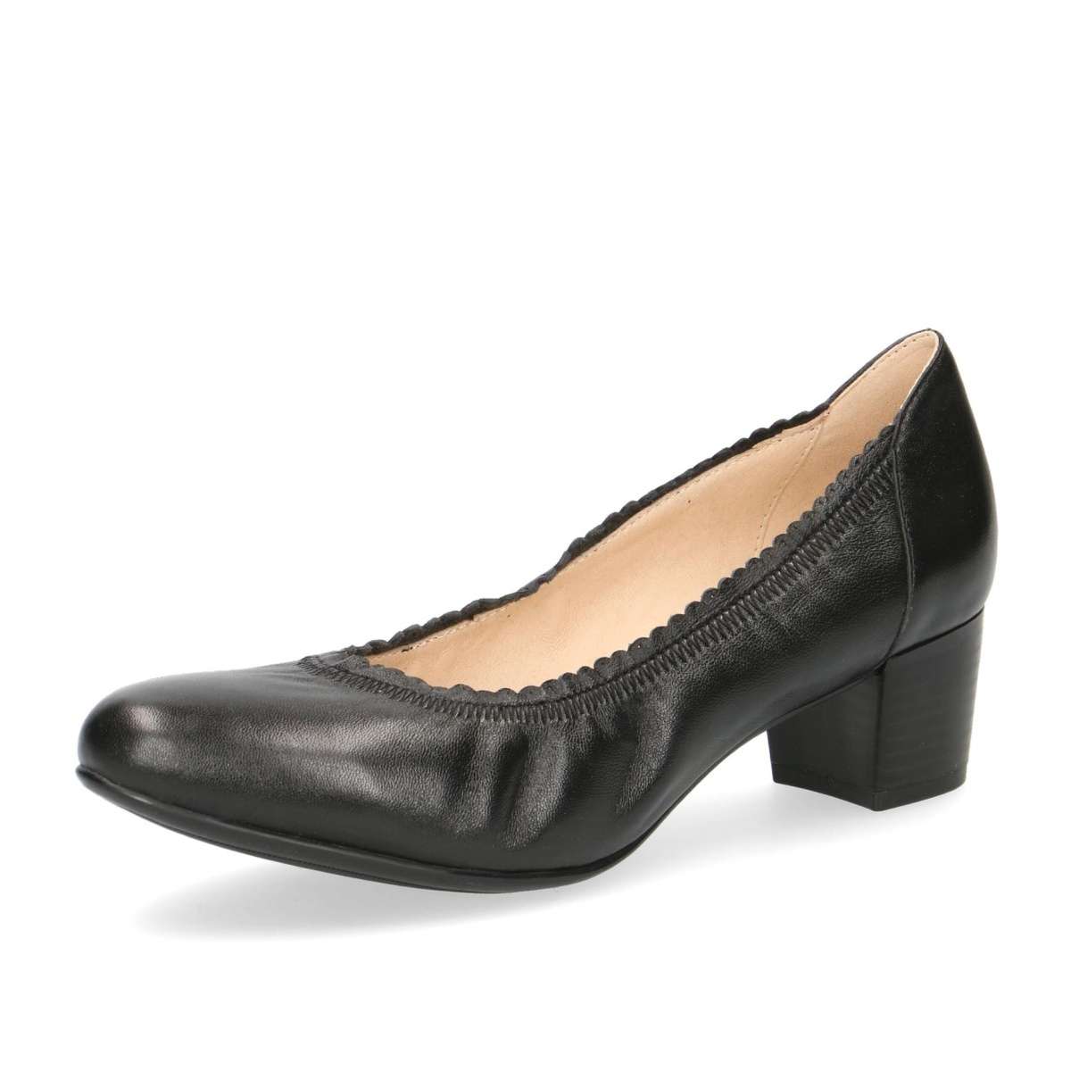 Dámské kožené lodičky značky CAPRICE černé barvy na nízkém podpatku.