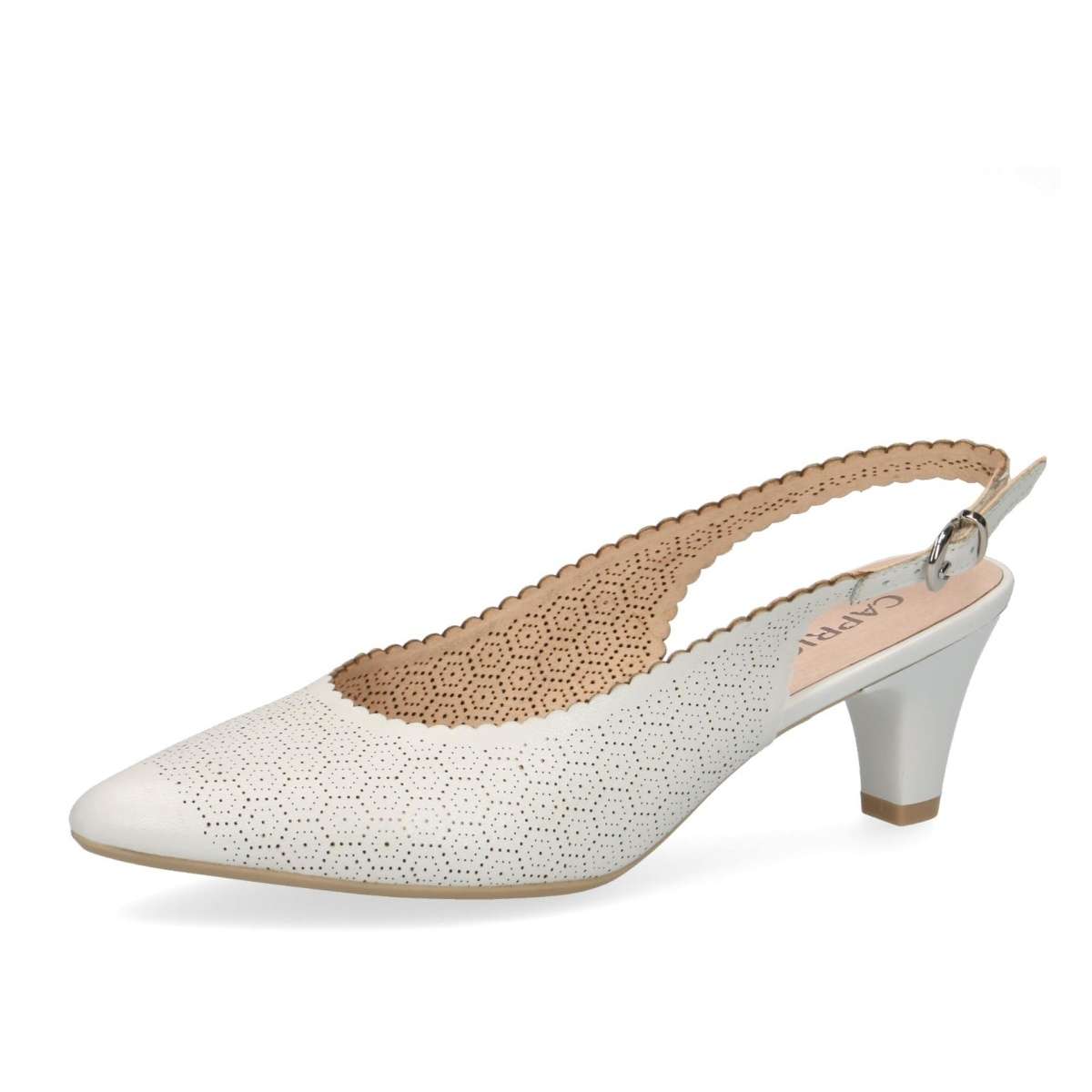 Jemné kožené lodičky značky CAPRICE, působí na noze elegantně a proto by je měla mít každá žena. Ozdobným prvkem je zde perforace a vlnkové olemování otevřené části. Lodičky mají středně vysoký podpatek, jsou pohodlné i při celodenním nošení. Tyto lodičky se skvěle hodí jak pro běžné nošení, tak i pro vzácné okamžiky.