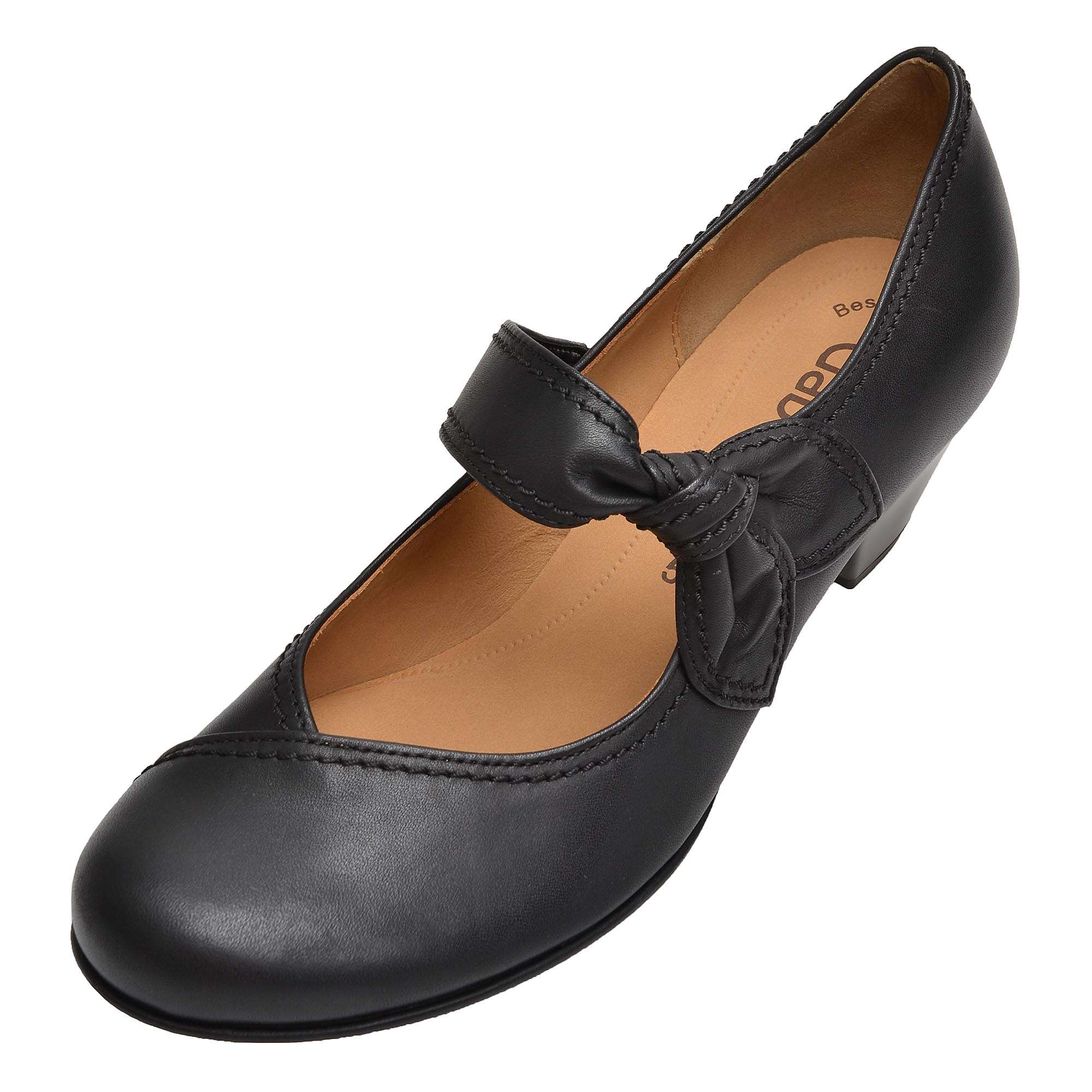 Dámské kožené lodičky černé barvy na podpatku, značky GABOR.