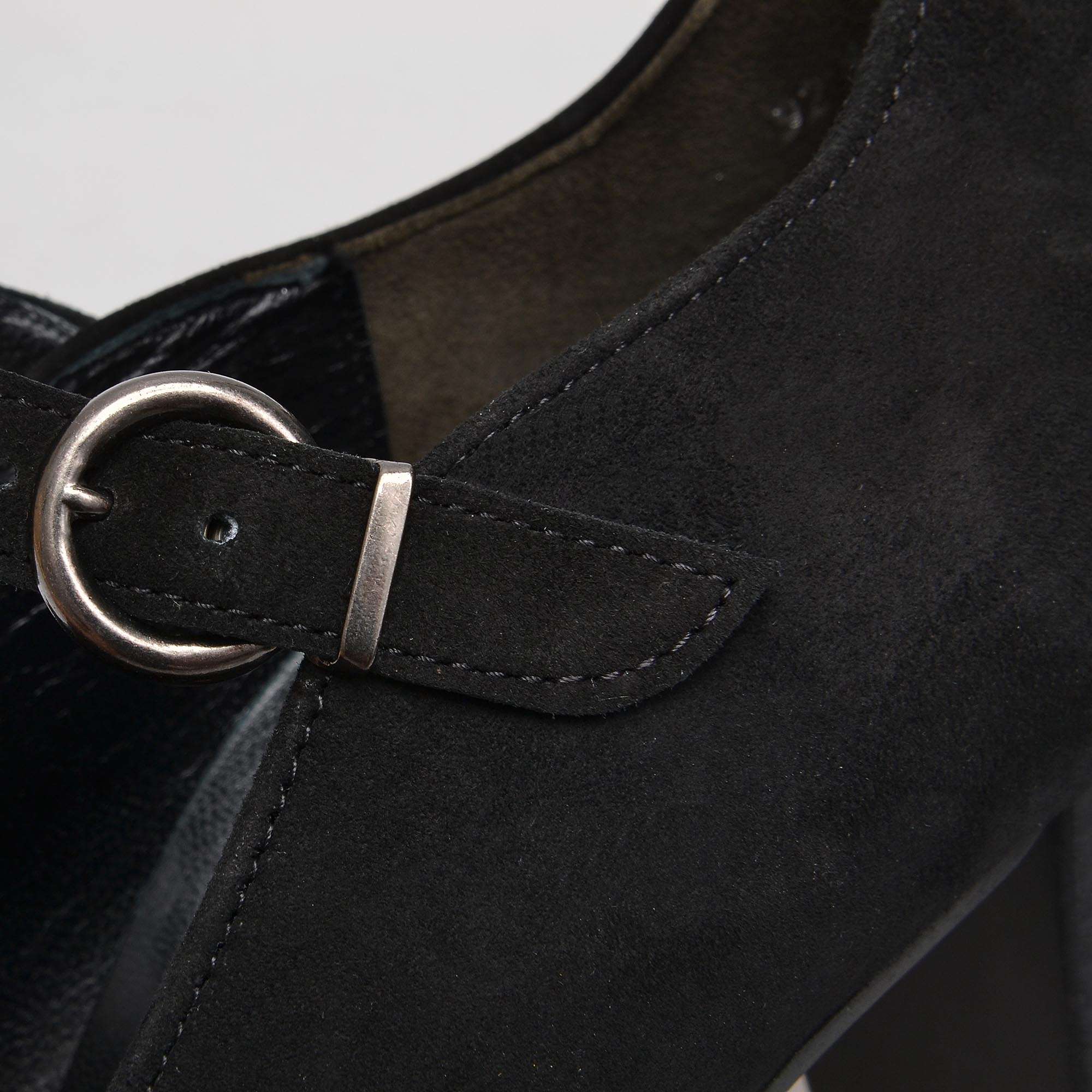 Dámské kožené lodičky černé barvy a semišového vzhledu jsou úžasné pro svou jednoduchost. Páskem přes nárt s přezkou si pak boty upravíte přímo k Vaší noze. Díky technologii Comfort, která poskytuje více prostoru pro prsty, bříška palců a v oblasti nártu se Vám v lodičkách bude chodit velmi příjemně po celý den v práci nebo při nákupech.
