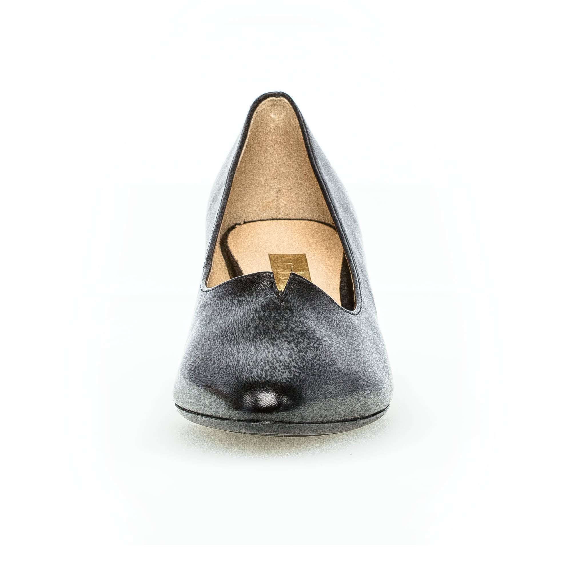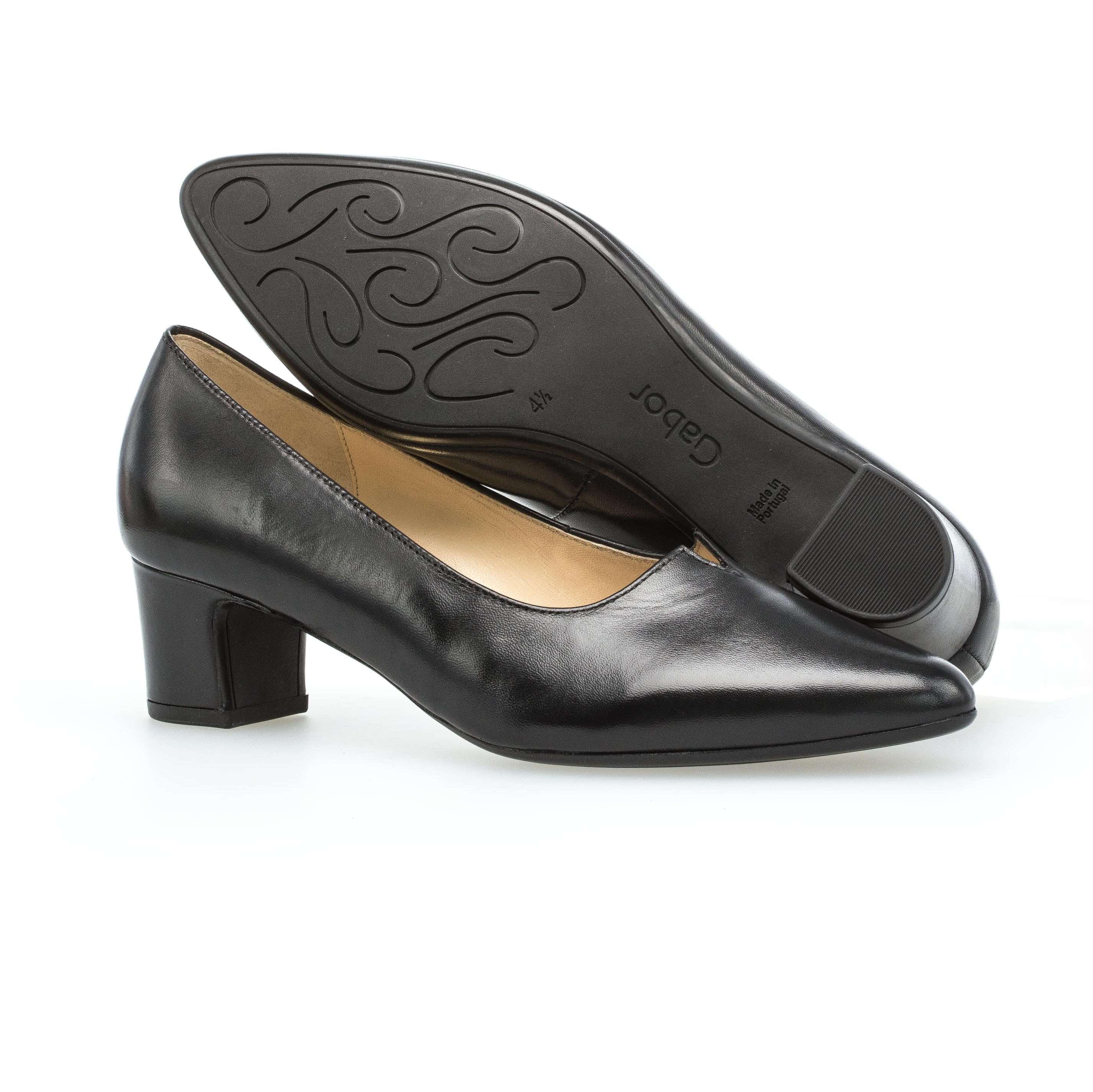 Dámská kožená lodička černé barvy na nízkém podpatku, značky GABOR. Podešev Podešev s jemným vzorkem je vyrobena z velmi kvalitního syntetického materiálu. Podpatek je vysoký cca 4,5 cm. Svršek Lodičky černé barvy z pravé kůže s nízkým podpatkem jsou zdobné svou jednoduchostí. Díky malému rozparku na nártu jdou lodičky snadno obout. Lodičky jsou elegantního střihu, díky tomu se dají zkombinovat téměř ke všem elegantním outfitům. Stélka Měkká stélka je společně s podšívkou vyrobeny z pravé kůže, které poskytne potřebný komfort.