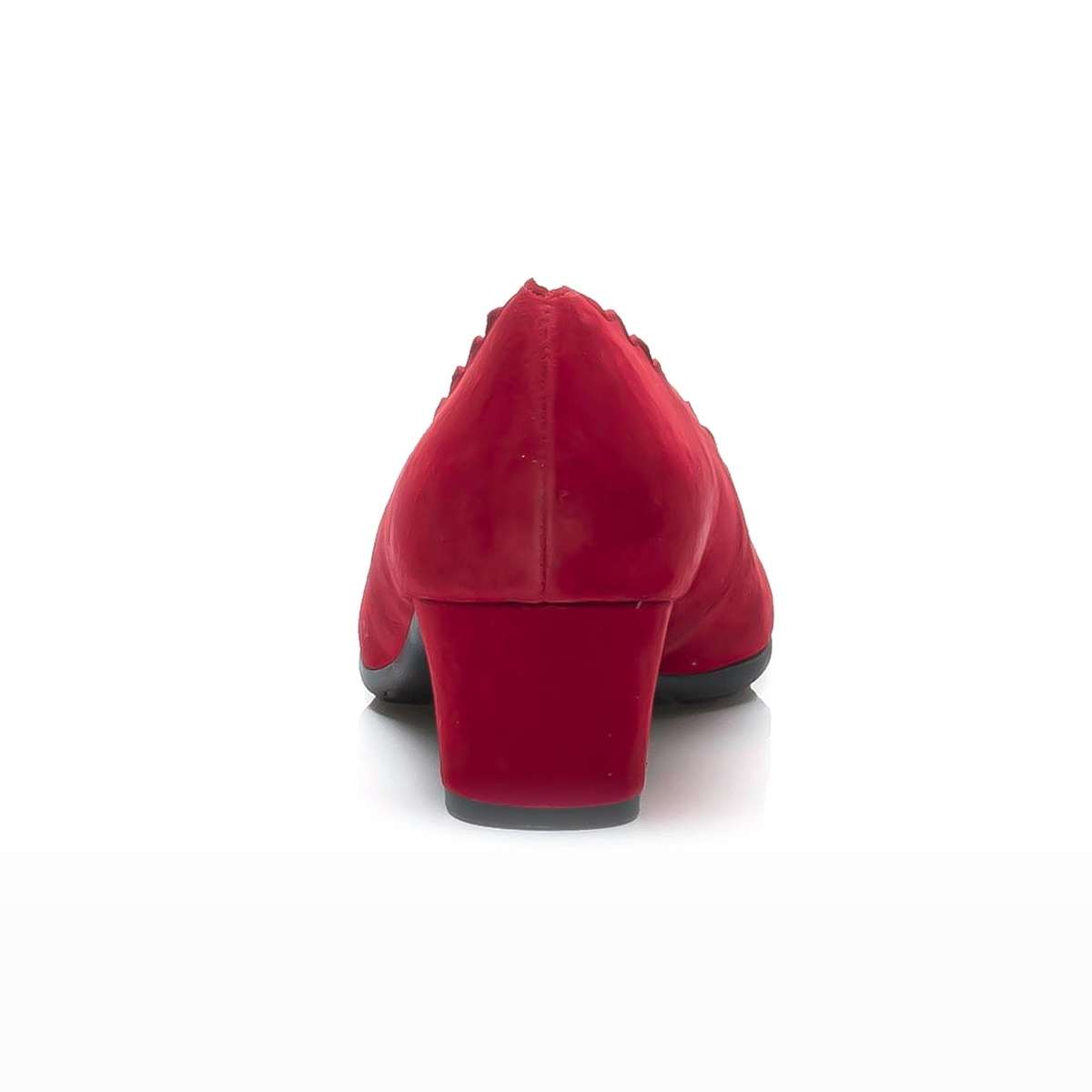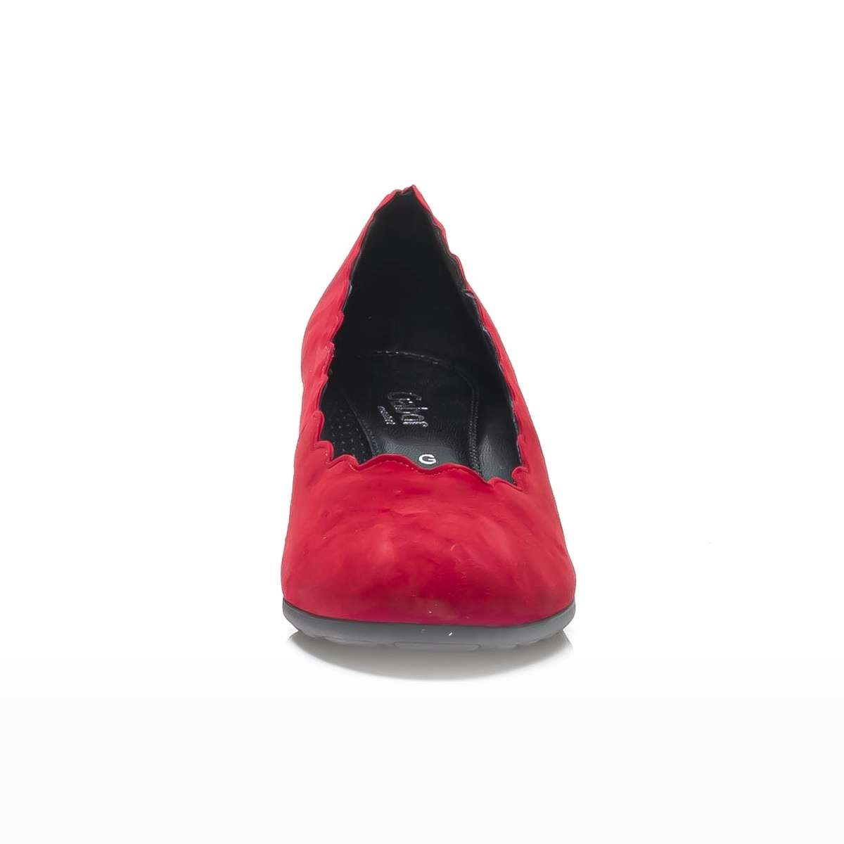 Tato unikátní lodička vyrobená z broušené kůže Vás na první pohled zaujme svou pronikavou červenou barvou. Vlnkovité lemování kolem celého nártu nechá krásně vyniknout Vašim nohám. Tyto lodičky budou skvěle vypadat jak k formálním, tak i k neformálním outfitům a díky nim zazáříte na každé příležitosti.