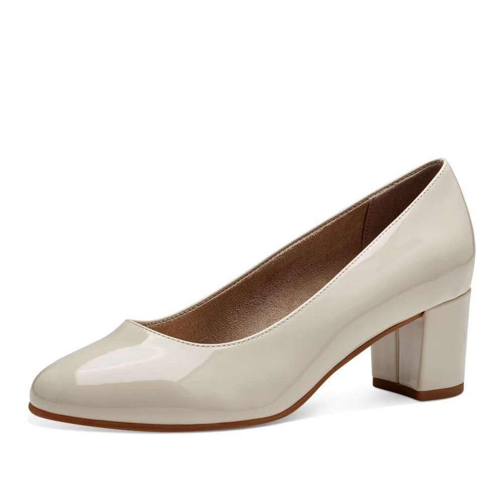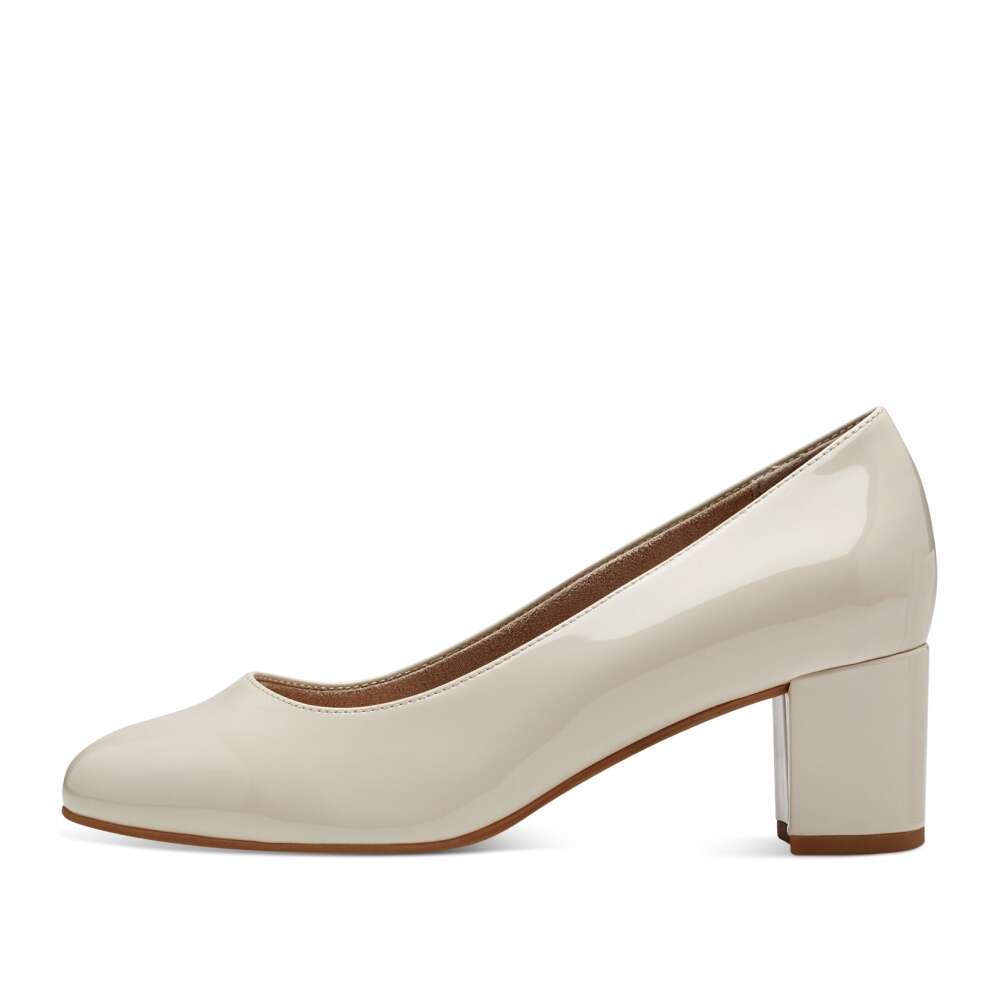 Detailní informace Tyto elegantní lodičky nabízejí klasický a univerzální vzhled, který je ideální pro různé příležitosti. Lakovaný světlý svršek a kulatá špička vytváří univerzální obutí každého dne. Ženský půvab pozdvihne nízký podpatek, který v spojení s flexibilní podešví zajistí pohodlí při chůzi. Perfektní volba pro ženy, které hledají stylový a pohodlný doplněk do své obuvi.