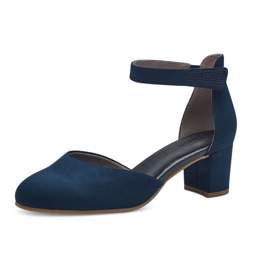Tmavě modré lodičky značky JANA s působivým zdobením drobnými kamínky u kotníku představují elegantní a sofistikovaný doplněk. Zapínání suchým zipem na pásku u kotníku zajišťuje snadnou a pohodlnou manipulaci. Nízký podpatek přidává stabilitu a pohodlí, zatímco měkká stélka zvyšuje komfort při nošení. Tyto lodičky spojují špičkový design s praktičností a jsou ideální volbou pro elegantní vzhled při různých příležitostech. Technologie: SoftLine – boty s touto technologií mají lehké, měkké a současně mimořádně flexibilní podešve, použitím speciálních materiálu a jedinečného složení podešve byl vyvinut nový druh flexibility.