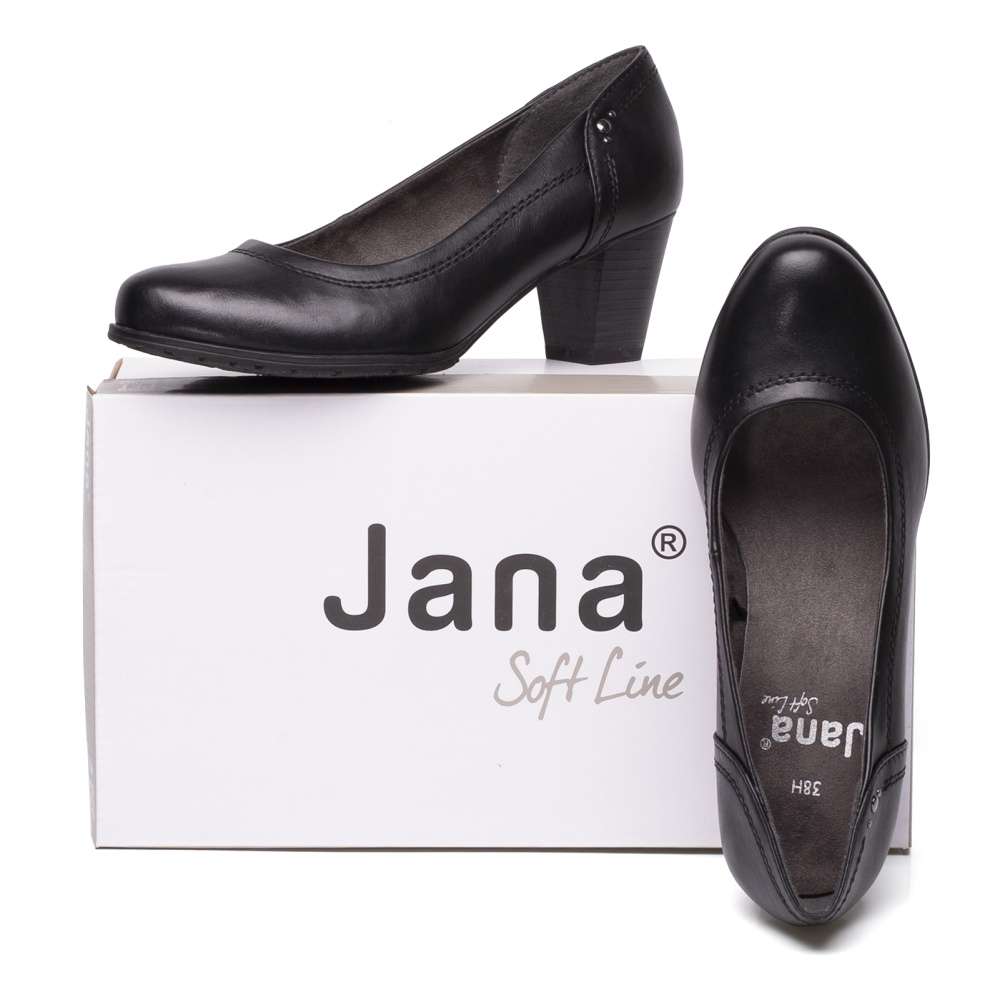 Dámské lodičky značky JANA s hladkým povrchem by měla mít ve svém botníku každá moderní žena. Boty se lehce nazouvají a jejich měkká stélka je skvělou volbou pro celodenní chůzi. Kvalitní podešev má jemný vzorek a stabilní podpatek s výškou cca 6 cm. Tento model můžete obout například ke kalhotám a vypasovanému saku.