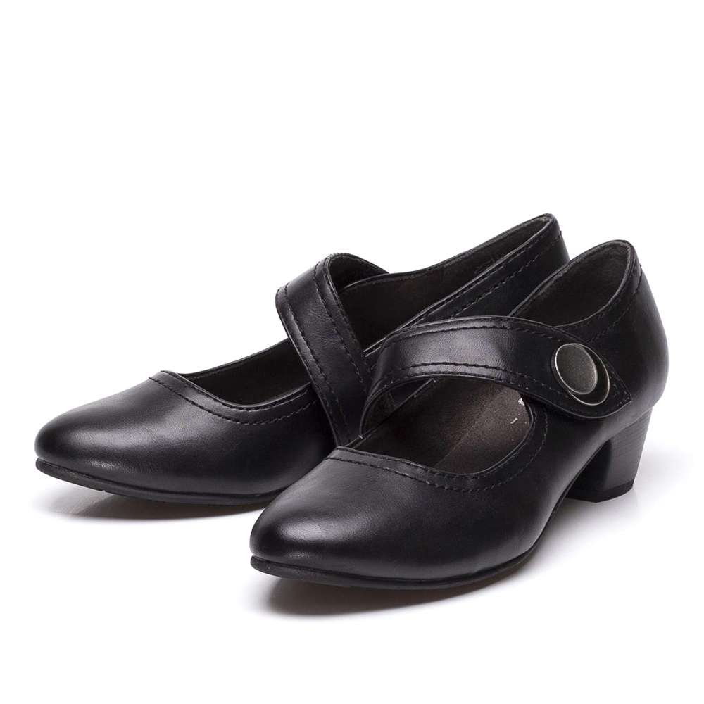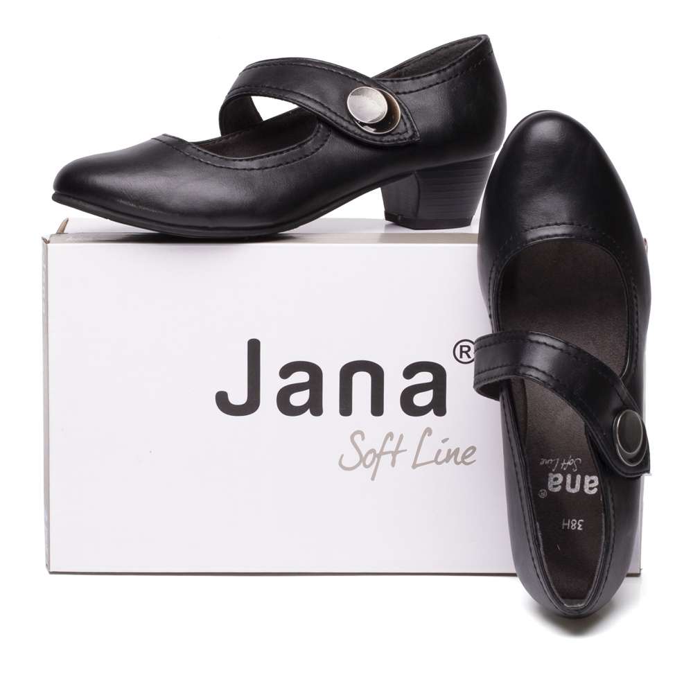 Dámské černé botičky značky JANA s širším podpatkem, jsou doplněny ozdobným páskem přes nárt. Obouvání je snadné a pásek na suchý zip skvěle zajistí Vaši stabilitu. Kvalitní podešev má jemný vzorek s podpatkem o výšce cca 4 cm a měkká stélka se postará o Vaše pohodlí. Tato obuv je jako dělaná k Vaší sukni nebo šatům.