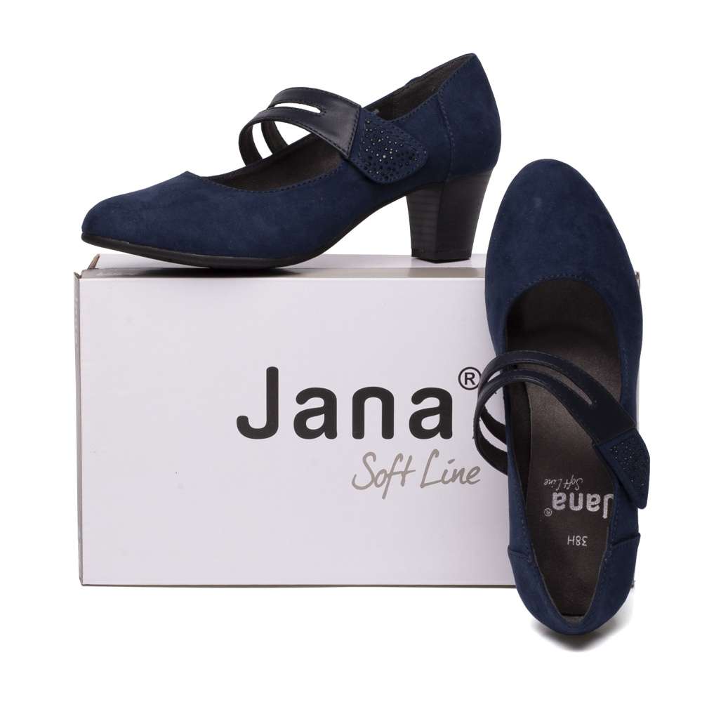 Dámské botičky značky JANA s širším podpatkem, jsou doplněny ozdobným páskem přes nárt. Podešev Kvalitní podešev má jemný vzorek a stabilní podpatek s výškou cca 5,5 cm. Svršek Dámské botičky značky JANA s širším podpatkem, jsou doplněny ozdobným páskem přes nárt. Obouvání je snadné a pásek na suchý zip skvěle zajistí Vaši stabilitu. Kvalitní podešev má jemný vzorek s podpatkem o výšce cca 5,5 cm a měkká stélka se postará o Vaše pohodlí. Tato obuv je jako dělaná k Vaší sukni nebo šatům. Stélka Měkká stélka Vám zaručí pohodlnou chůzi po celý den.