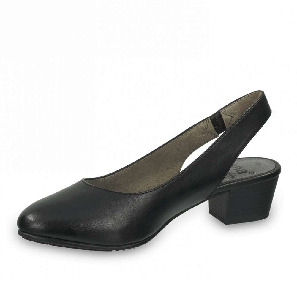 Dámské lodičky s volnou patou a kulatou špičkou vypadají elegantně. Hladký svršek má na pásku na vnější straně zabudovanou pružnou gumičkou nejen pro snadnější obutí, ale i pro lepší přizpůsobení Vaší noze.