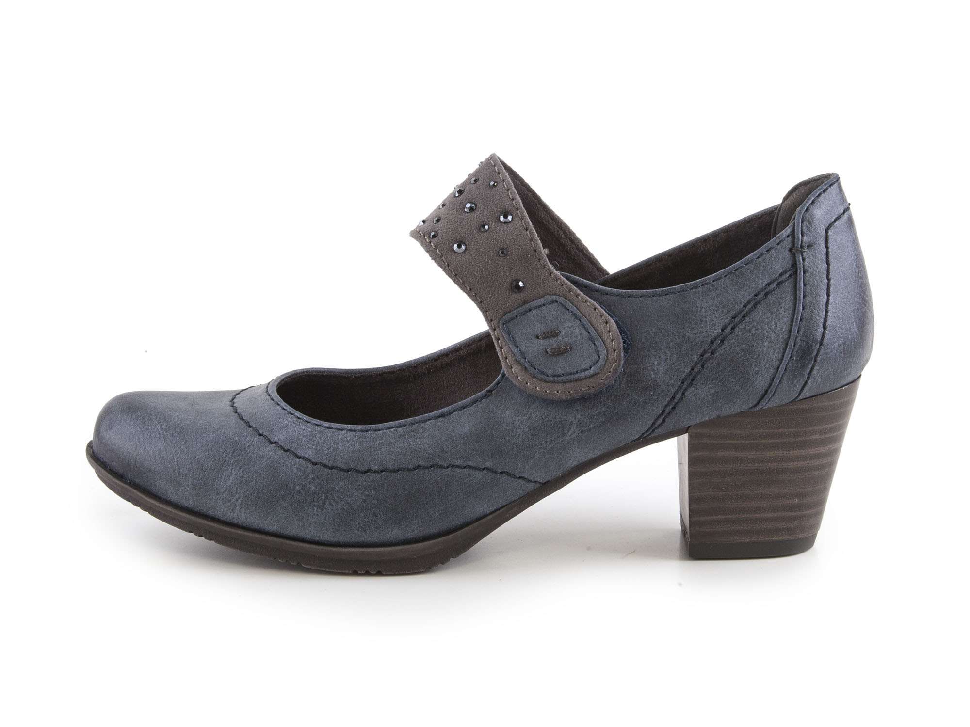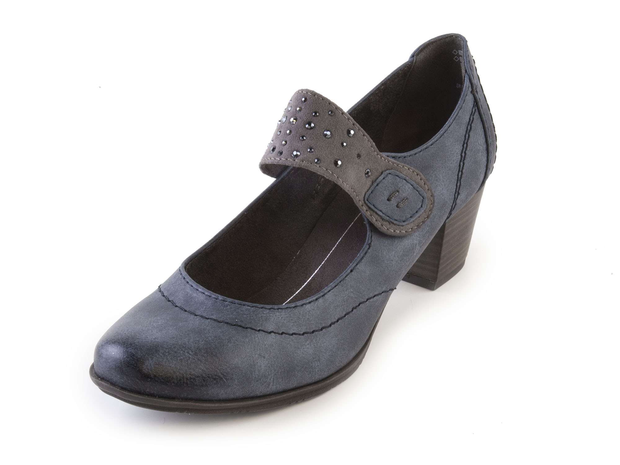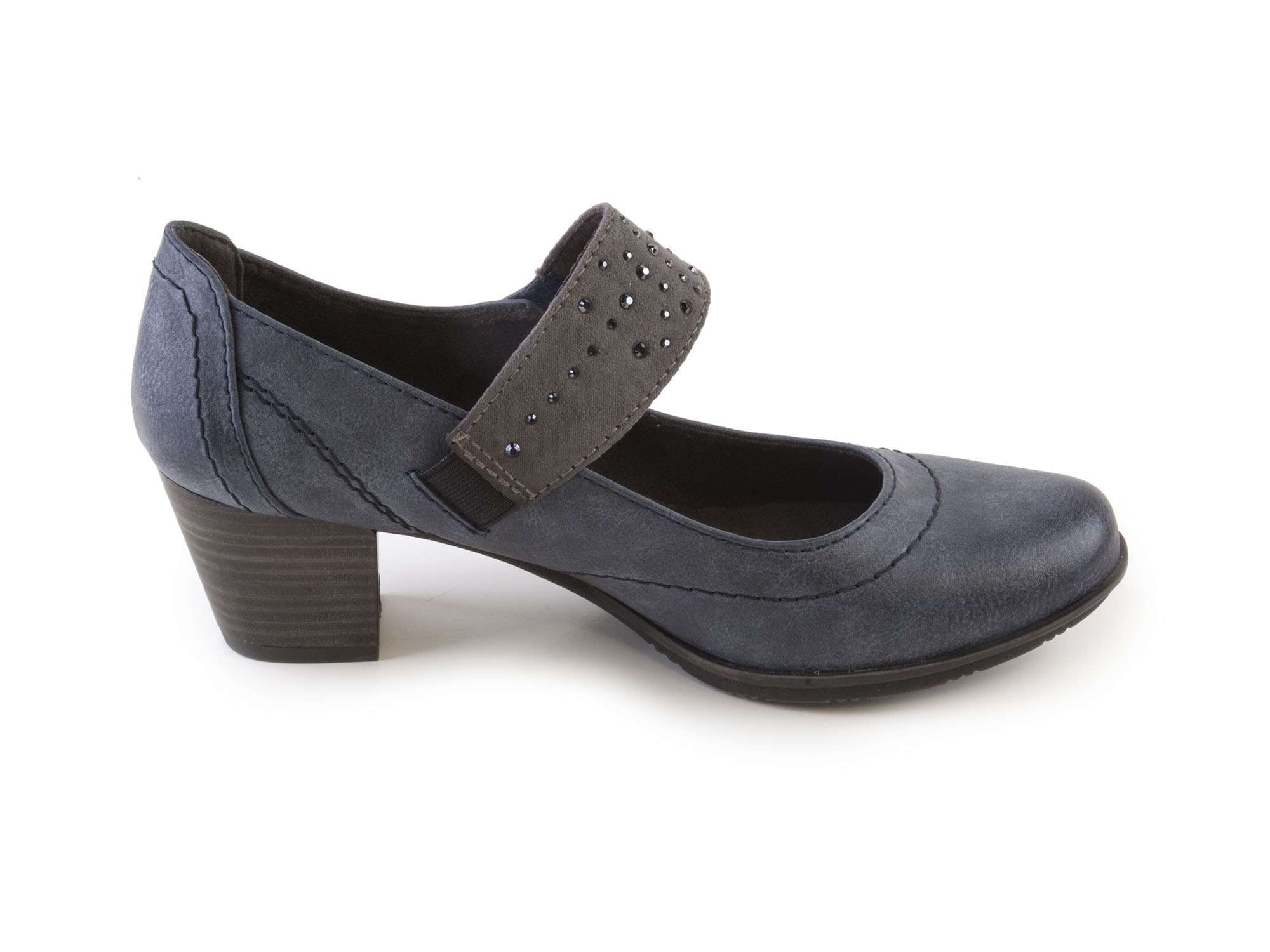 Dámské lodičky na středním podpatku se zdobeným páskem šíře H 8-24366-29 / modr