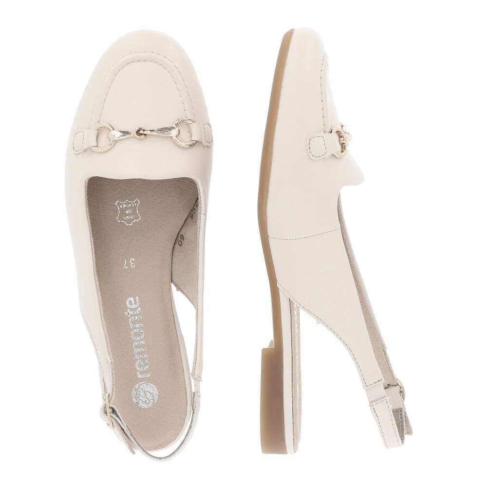 Obuv REMONTE je vyšší řadou značky RIEKER, obuv se vyznačuje kvalitou použitých materiálů. Tyto kožené baleríny s volnou patou RIEKER představují moderní a pohodlnou obuv, s elegantní designovou aplikací v přední části jsou tyto baleríny skvělou volbou pro stylový doplněk do šatníku každé z vás. Zapínání sponou v zadní části umožňuje snadné obouvání a vsazené gumičky poskytují pohodlné a bezpečné upevnění na noze, což je ideální pro celodenní nošení. Měkká stélka a nízký podpatek poskytují optimální pohodlí ideální pro každodenní nošení. Tyto baleríny kombinují eleganci s pohodlím, což je skvělá kombinace pro různé příležitosti.