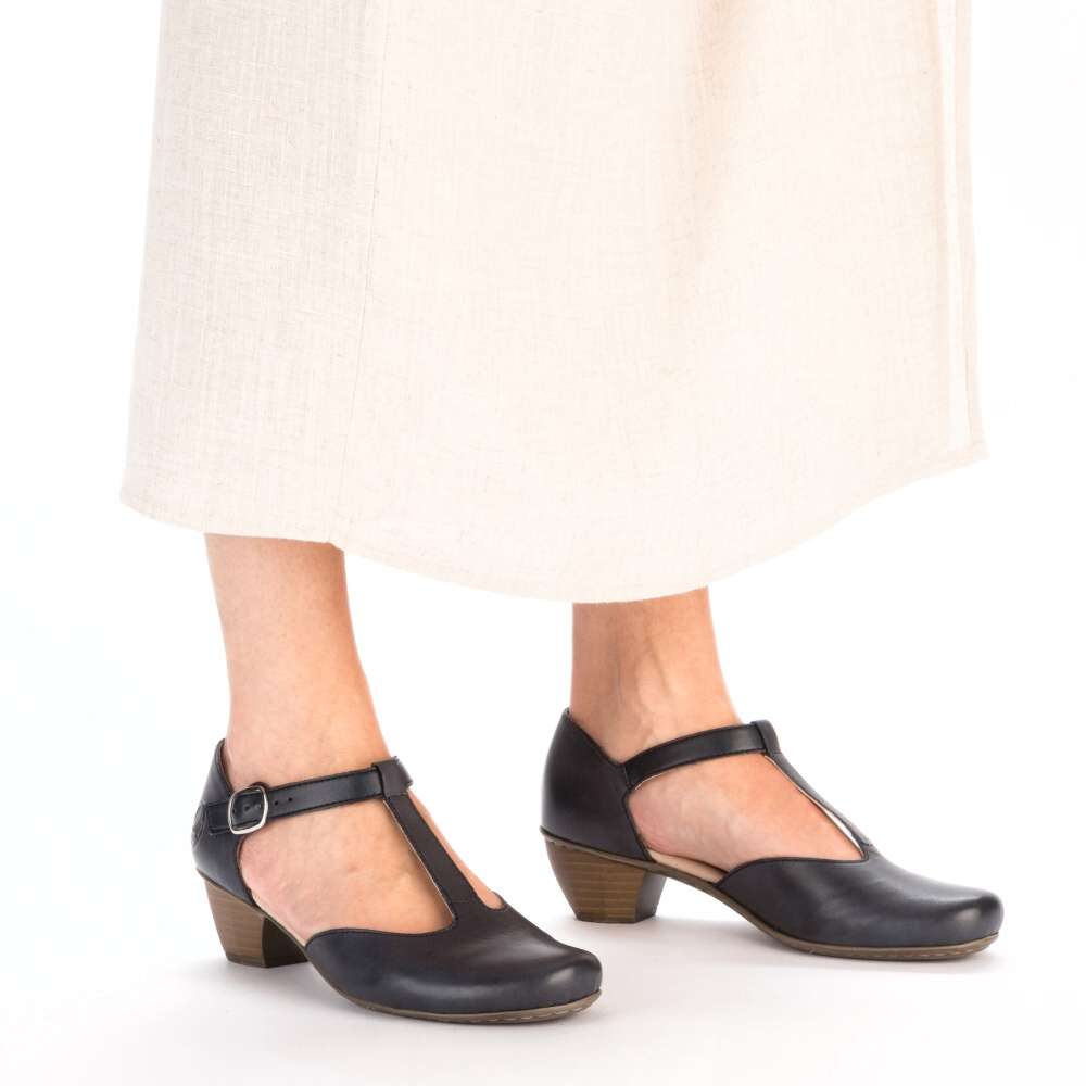 Vklouzněte a ciťte se dobře s botami značky Rieker! Tyto modré lodičky přesvědčí skutečným komfortem pro nohy. Zapínají se na patentní sponu, kterou si upravíte obvod přes nárt. Lehká a nárazy tlumící podrážka s nízkým podpatkem hýčká vaše chodidla při každém kroku a dalším plusem je extra měkká stélka. Určitě je využijete jak do práce tak na kávičku s kamarádkou. Technologie: Antistress - podešev je díky této technologii lehká, flexibilní, absorbuje nárazy při došlapu.