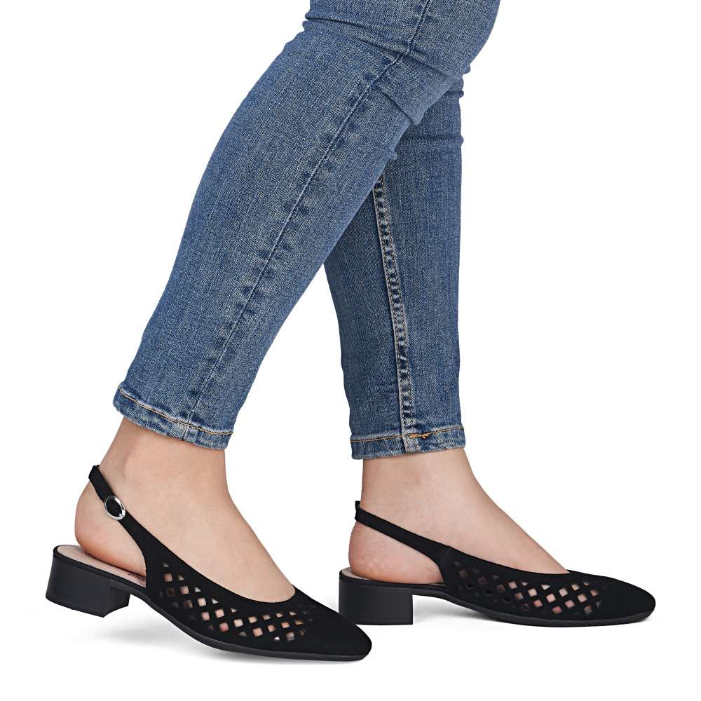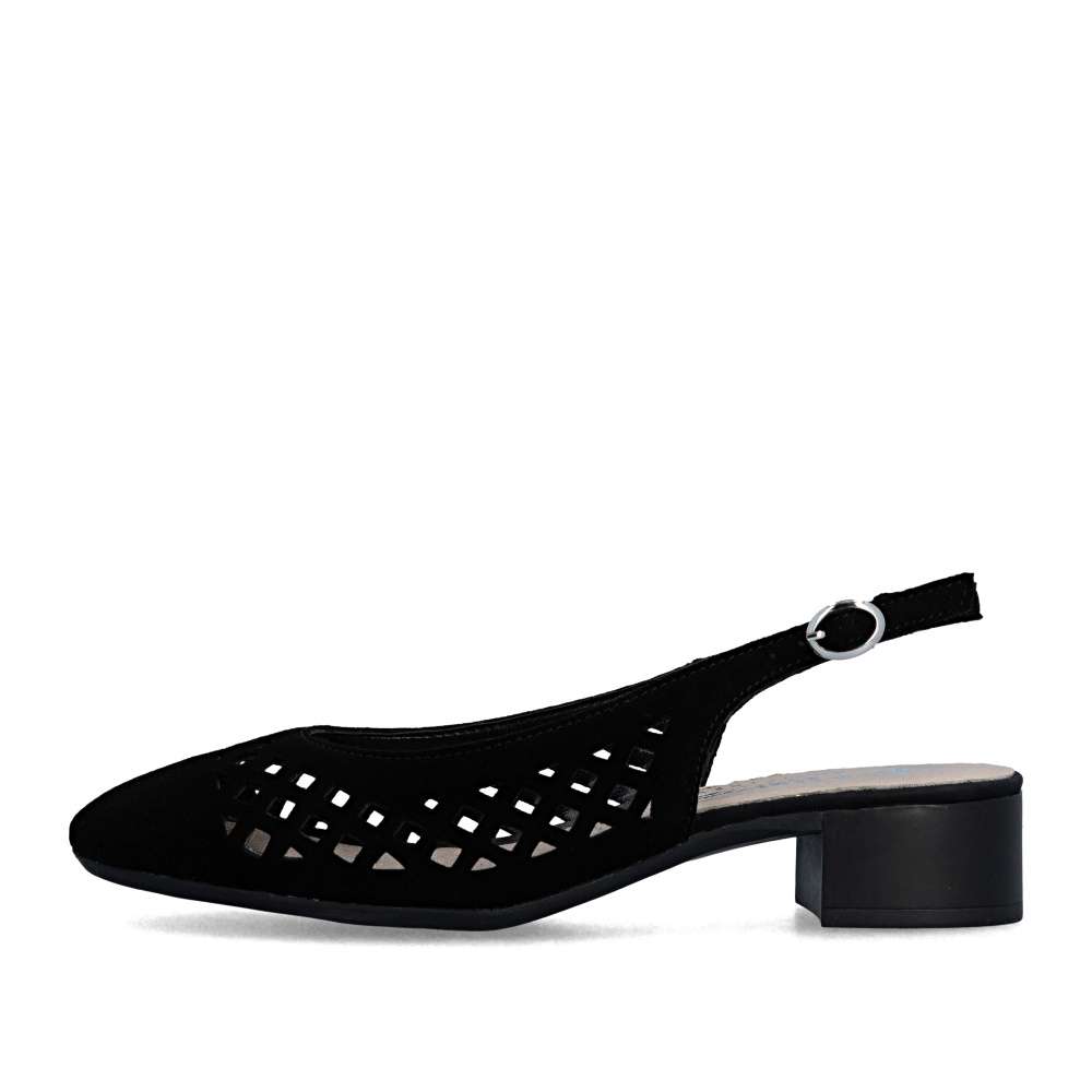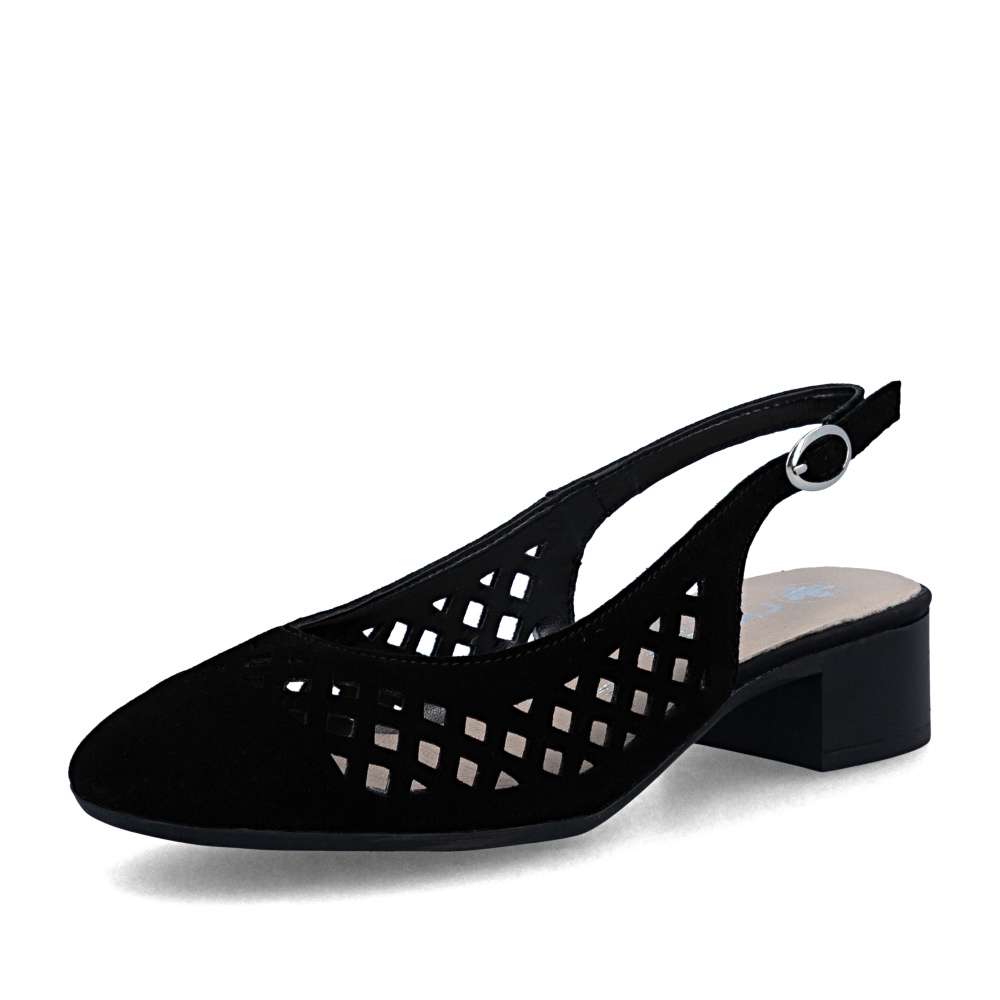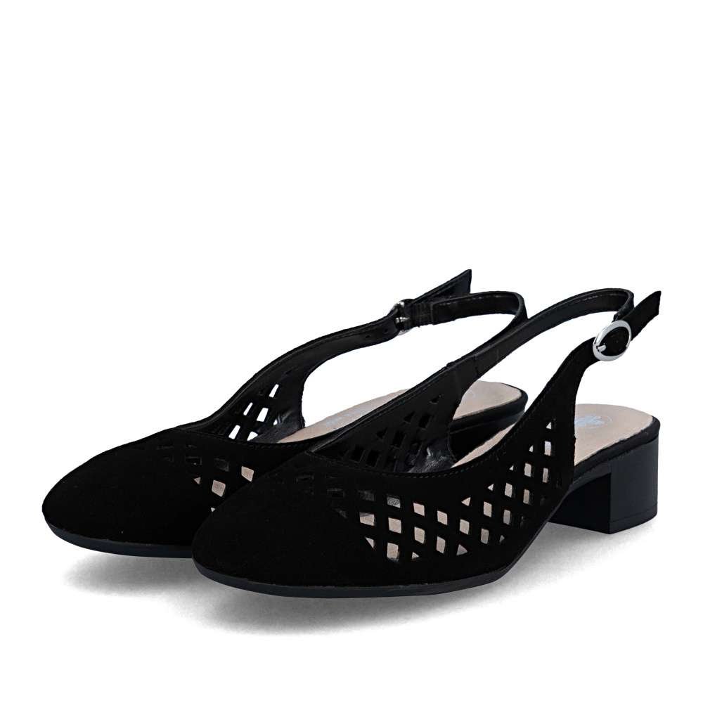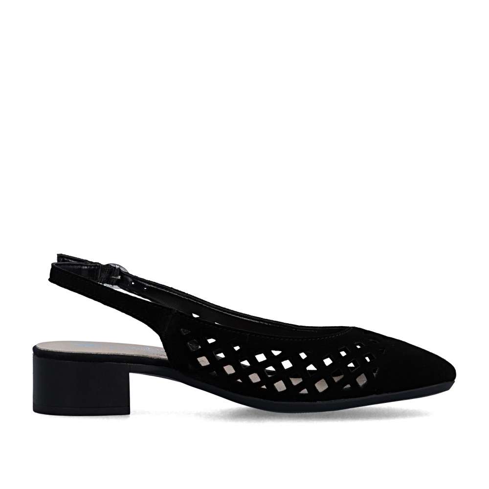 Dopřejte si pohodlí a eleganci se slingback lodičkami z koženého materiálu, které zdobí kulatá plná špička a výrazná perforace. Pásek za patou s kovovou přezkou zajišťuje jisté a pohodlné nošení. Navíc měkká kožená stélka poskytuje maximální komfort po celý den. Díky čistému, univerzálnímu tvaru jsou tyto lodičky nadčasové a snadno kombinovatelné – ideální do práce, na schůzky i pro neformální příležitosti.