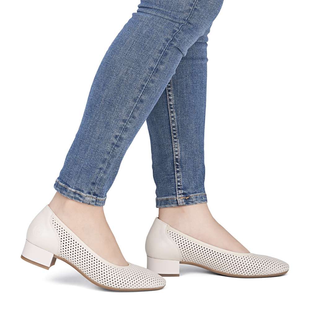 Dopřejte si dokonalou rovnováhu mezi pohodlím a elegancí s béžovými lodičkami Rieker, které si zamilujete na první krok. Jemný perforovaný vzor dodává botám lehkost a vzdušnost, zatímco kožená stélka a širší střih se postarají o vyjímečný komfort během celého dne. Stabilní širší a nízký podpatek vám poskytne jistotu při každém kroku, abyste se mohli pohybovat s přirozenou grácií a sebevědomím. Díky čistým liniím a univerzálnímu tvaru působí tyto lodičky nadčasově a snadno je zkombinujete s pracovním kostýmem, elegantními šaty i ležérnějším outfitem. Jsou ideální volbou do práce, na důležitá setkání i na příležitosti, kdy chcete vypadat stylově bez kompromisů v pohodlí.