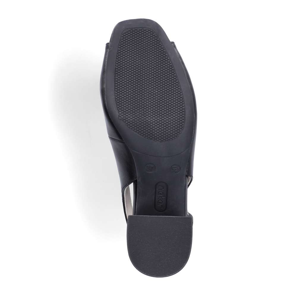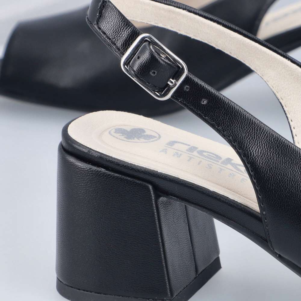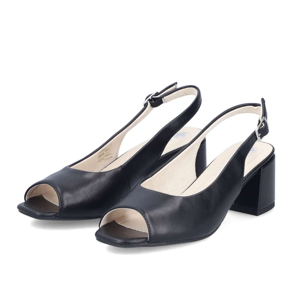 Tyto lodičky RIEKER s volnou patou a otevřenou špičkou představují moderní a pohodlnou obuv. S jednoduchým svrškem jsou tyto lodičky skvělou volbou pro univerzální doplněk vašeho šatníku. Zapínání sponou v zadní části umožňuje snadné obouvání a vsazené gumičky poskytují pohodlné a bezpečné upevnění na noze, což je ideální pro celodenní nošení. Měkká stélka a široký podpatek poskytují optimální pohodlí ideální pro každodenní nošení. Tato obuv kombinuje eleganci s pohodlím, což je skvělá kombinace pro různé příležitosti.