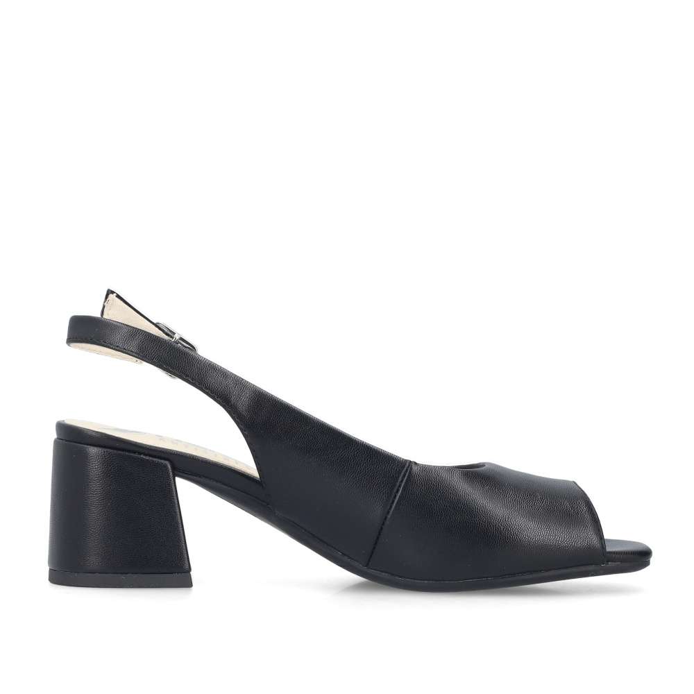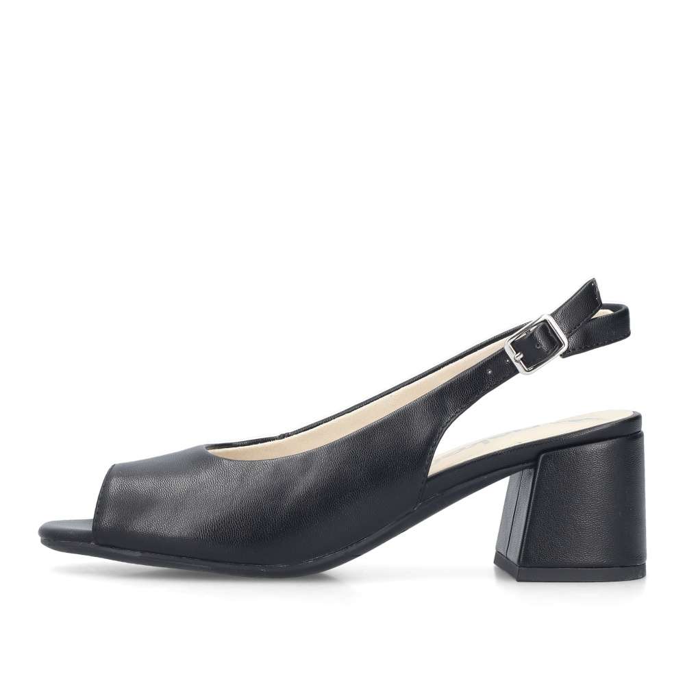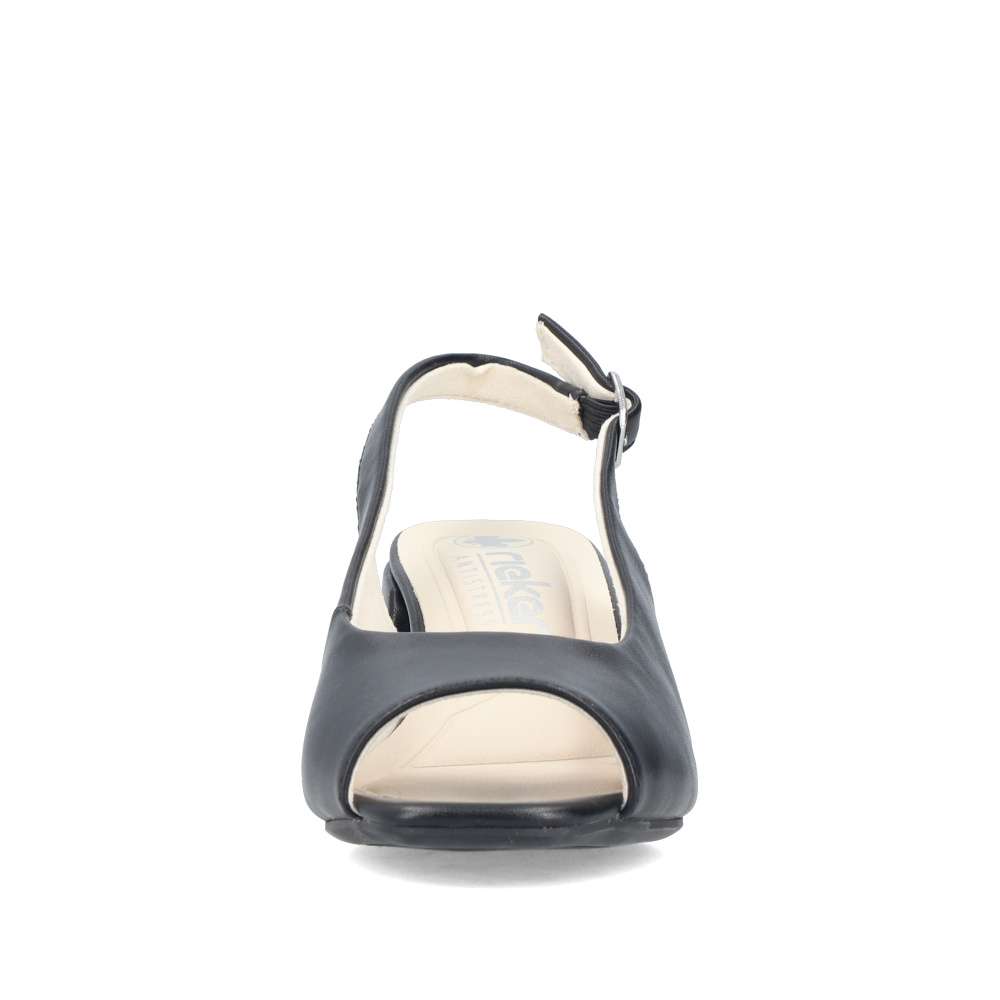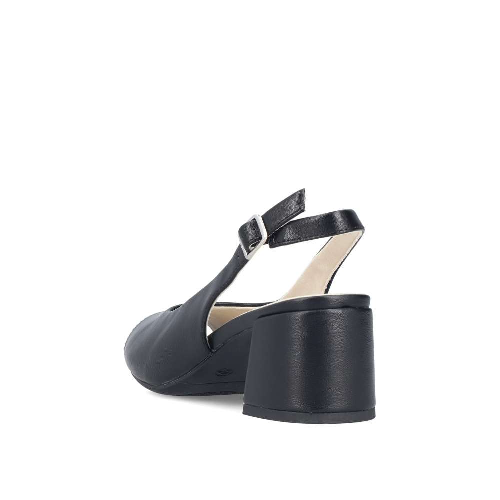 Tyto lodičky RIEKER s volnou patou a otevřenou špičkou představují moderní a pohodlnou obuv. S jednoduchým svrškem jsou tyto lodičky skvělou volbou pro univerzální doplněk vašeho šatníku. Zapínání sponou v zadní části umožňuje snadné obouvání a vsazené gumičky poskytují pohodlné a bezpečné upevnění na noze, což je ideální pro celodenní nošení. Měkká stélka a široký podpatek poskytují optimální pohodlí ideální pro každodenní nošení. Tato obuv kombinuje eleganci s pohodlím, což je skvělá kombinace pro různé příležitosti.