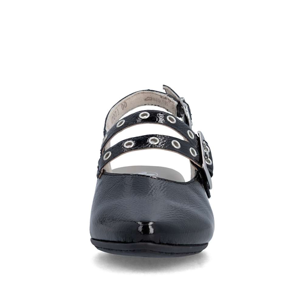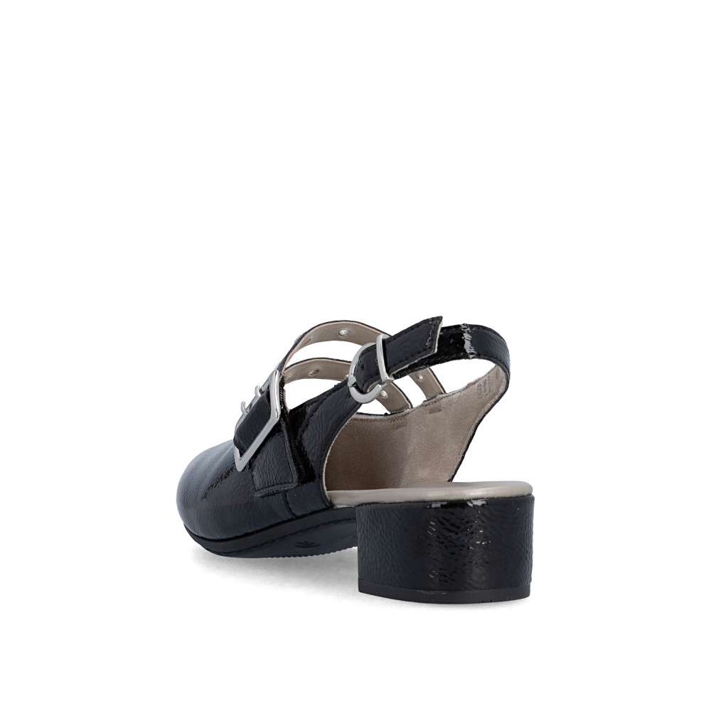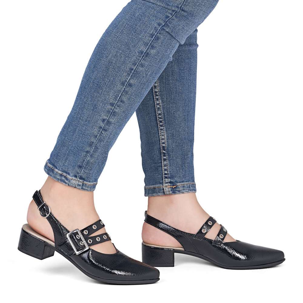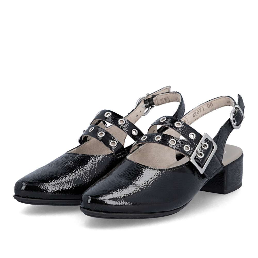 Okouzlující odlesky černého svršku a výrazné zdobení nártového pásku dodávají těmto lodičkám RIEKER nezaměnitelný charakter. Zadní pásek je vybaven nastavitelnou sponou, díky které si obuv jednoduše přizpůsobíte podle svých potřeb a zabezpečíte si pevné a pohodlné usazení na noze. Příjemná stélka se postará o komfort i během delšího nošení a nízký podpatek dodává modelu ladnost, přičemž zároveň poskytuje stabilitu a jistotu při každém kroku. Tyto lodičky RIEKER jsou ideální volbou pro ženy, které chtějí zazářit, cítit se sebevědomě a zároveň si dopřát pohodlí během celého dne.