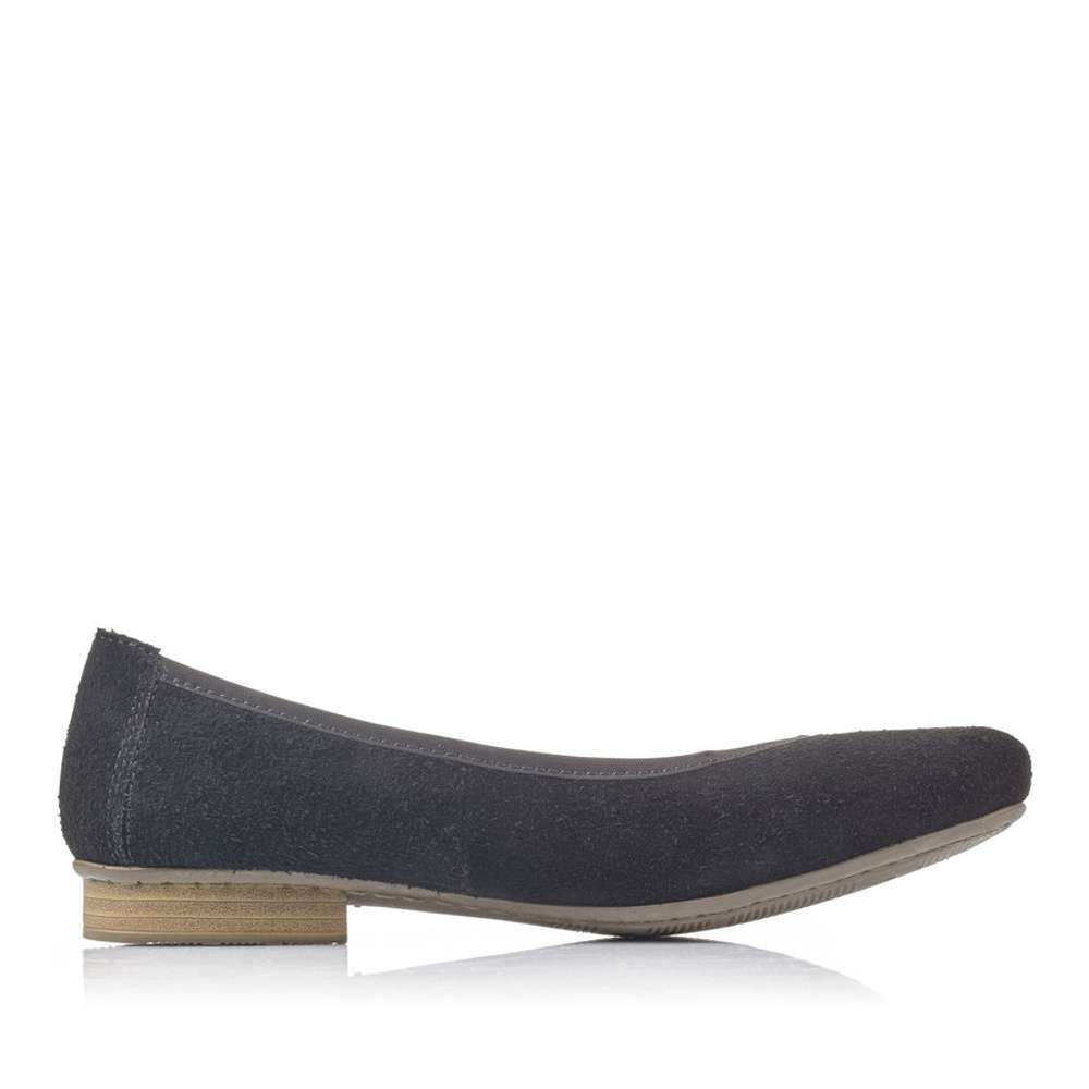 Svršek černé barvy je vyroben z pravé broušené kůže a ozdoben je decentním logem značky v oblasti paty.
