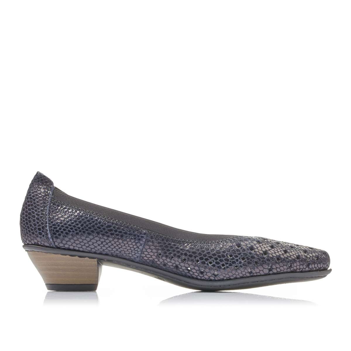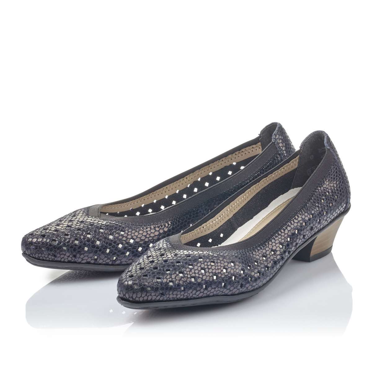 Dámské lodičky na nízkém podpatku v modré barvě, značky RIEKER.
