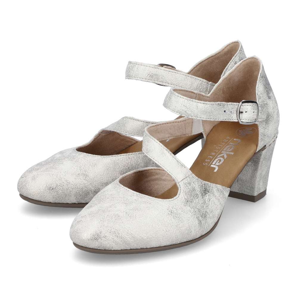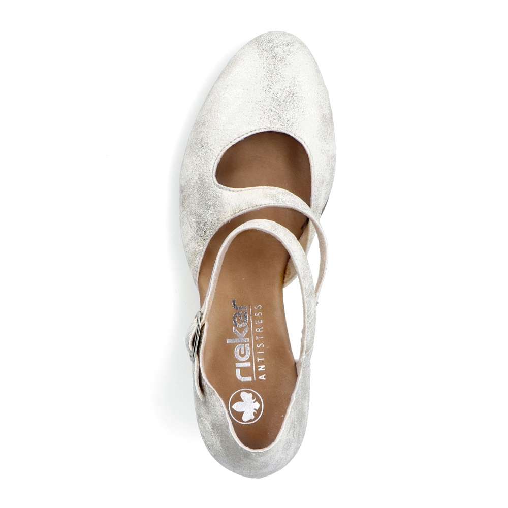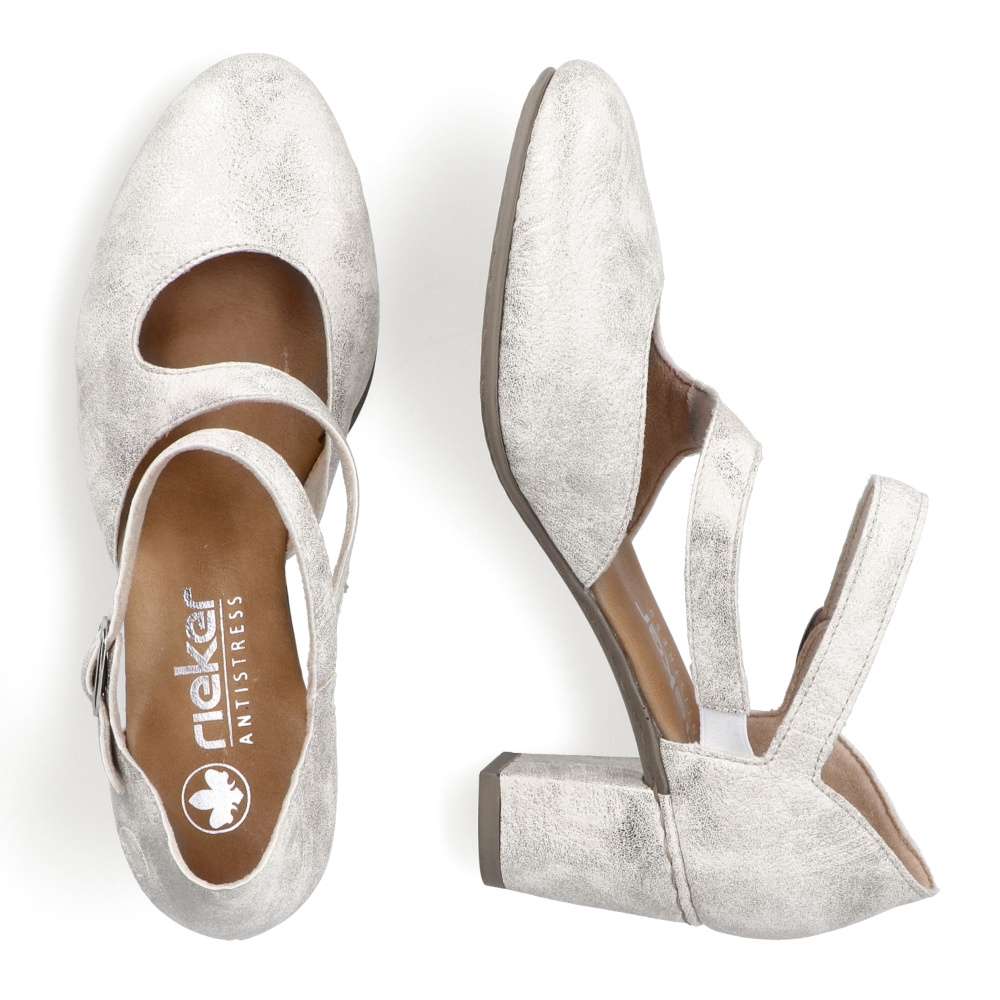 Léto je tu a s ním i naše svěží kousky. Tyto lodičky značky Rieker Vás nadchnou pro svůj nevšední designe. Nápaditý metalický svršek a stylové pásky vedeny přes nárt a kolem kotníku zakončeny přezkou pro dokonalé přizpůsobení přímo na Vaši nožku. Měkká stélka spolu s jedinečnou podešví vybavenou Antistress technologií Vám poskytne pocit pohodlí po celý den. Technologie: Antistress – podešev je díky této technologii lehká, flexibilní, absorbuje nárazy při došlapu a snadno se přizpůsobí každé noze.