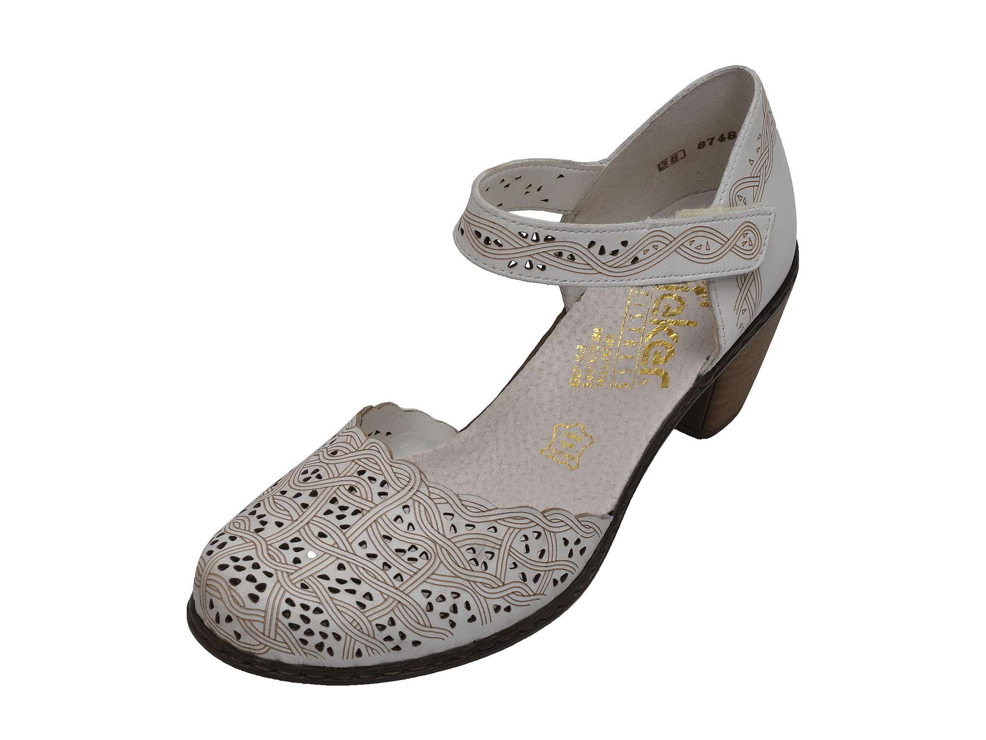 Dámské letní sandály/lodičky na středně vysokém podpatku s přezkou a ozdobným vzorem [slovnik=4]šíře G[/].