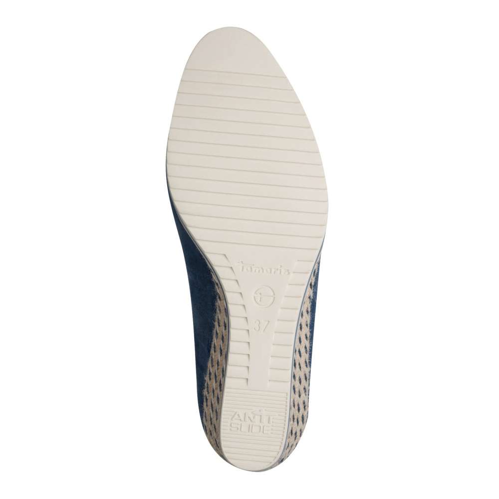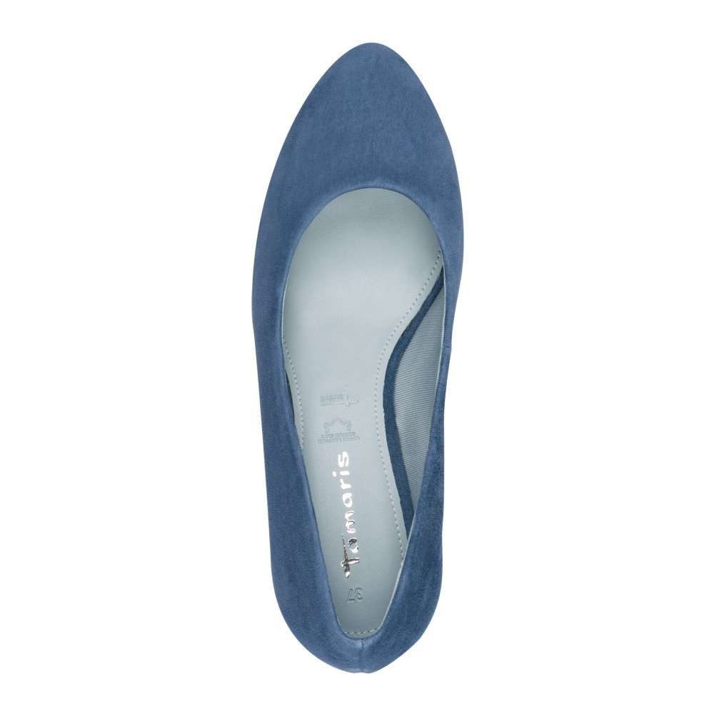 Tyto modré kožené lodičky od značky Tamaris se stanou výrazným prvkem každého outfitu. Jejich nepřehlédnutelný svršek v syté barvě dodá šmrnc, zatímco klínový podpatek ve stylovém designu zajistí stabilitu a komfort po celý den svou protiskluzovou úpravou. Měkká stélka jemně podpírá chodidlo a dokonale se přizpůsobí jeho tvaru. Tento model přináší perfektní spojení pohodlí a elegance v odvážném provedení, ideální jak pro pracovní den, tak pro speciální příležitosti.