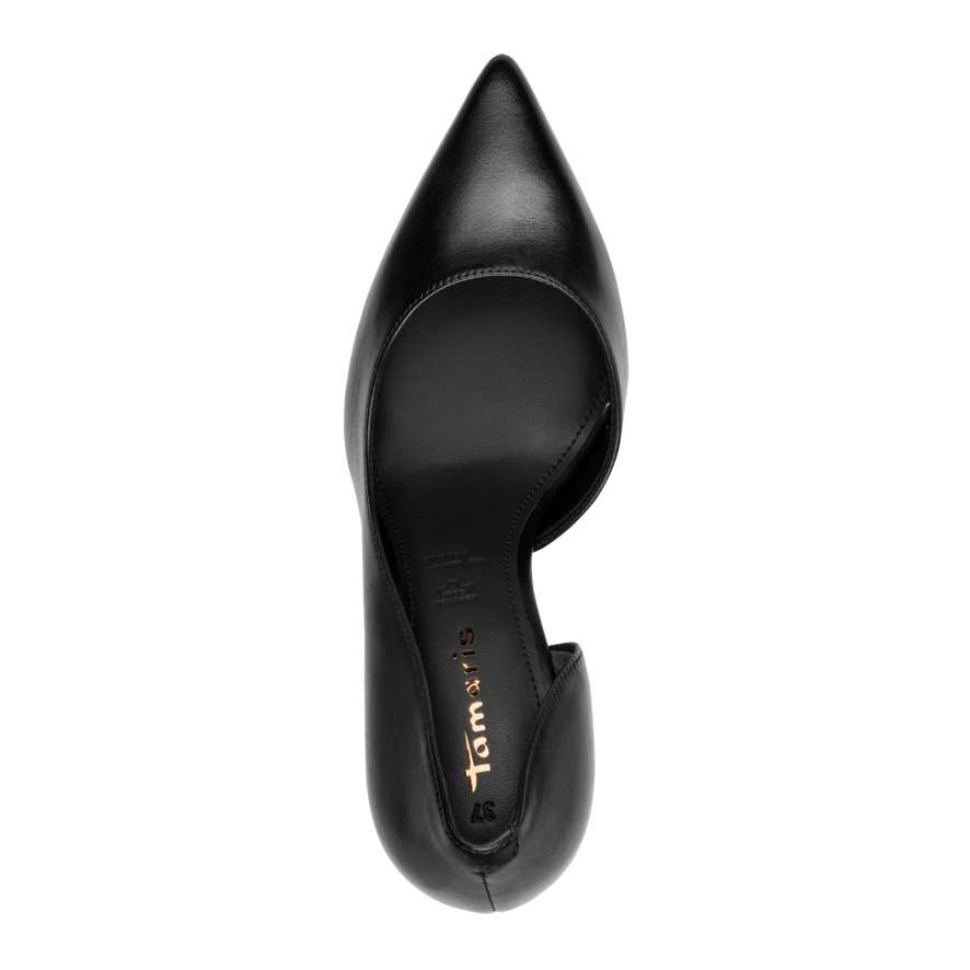 Působivá elegance těchto lodiček Tamaris je skutečně nepřehlédnutelná. Černý kožený svršek s hladkými a čistými liniemi dodává modelu sofistikovaný a nadčasový vzhled, který se snadno kombinuje s různými outfity – od pracovního stylu až po večerní společenské události. Zúžená špička a vysoký podpatek zvýrazní ženskou siluetu a ženský půvab každé z Vás. Uvnitř se nachází měkká stélka, která se dokonale přizpůsobí tvaru chodidla a poskytuje maximální komfort při každém kroku. Tyto lodičky jsou ideální volbou pro ženy, které chtějí spojit elegantní vzhled s komfortem – ať už je vezmete do práce, na společenskou událost, rande nebo na večerní posezení s přáteli.