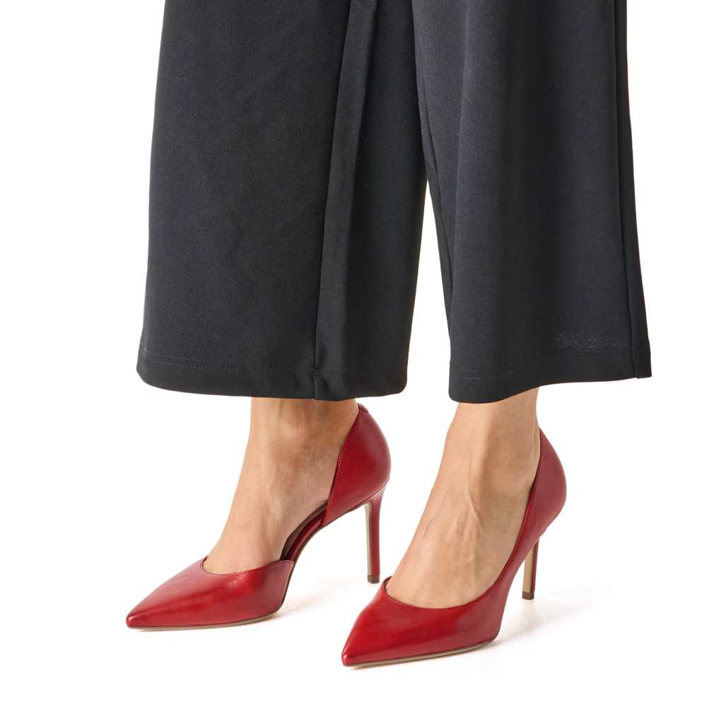 Detailní informace Působivá elegance těchto lodiček Tamaris je skutečně nepřehlédnutelná. Červený kožený svršek s hladkými a čistými liniemi dodává modelu sofistikovaný a nadčasový vzhled, který se snadno kombinuje s různými outfity – od pracovního stylu až po večerní společenské události. Zúžená špička a vysoký podpatek zvýrazní ženskou siluetu a ženský půvab každé z Vás. Uvnitř se nachází měkká stélka, která se dokonale přizpůsobí tvaru chodidla a poskytuje maximální komfort při každém kroku. Tyto lodičky jsou ideální volbou pro ženy, které chtějí spojit elegantní vzhled s komfortem – ať už je vezmete do práce, na společenskou událost, rande nebo na večerní posezení s přáteli. Svým nadčasovým designem, precizním zpracováním a jemnými detaily, jako je decentní logo značky, se stanou stylovým a spolehlivým doplňkem každého outfitu, který zvýrazní vaši ženskost a eleganci.