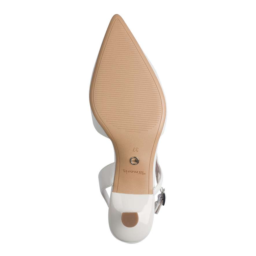 Nechte vyniknout svou ženskost v modelu značky Tamaris, který okouzlí svým půvabným a nadčasovým designem. Bílý svršek v lesklém provedení formovaný do působivých linií dodává obuvi sofistikovaný charakter a podtrhuje přirozenou eleganci každého kroku. Zadní pásek se sponou umožňuje snadné nastavení podle vašich potřeb a měkká stélka s technologií Touch It se přirozeně přizpůsobí tvaru chodidla. Nízký podpatek jemně zvýrazní ženský šarm a dodá chůzi ladnost, aniž by ubíral na komfortu. Tento model Tamaris je ideální volbou pro ženy, které chtějí působit elegantně, cítit se sebevědomě a užívat si pohodlí v každém okamžiku – ať už v práci, na společenské události nebo při výjimečných chvílích.